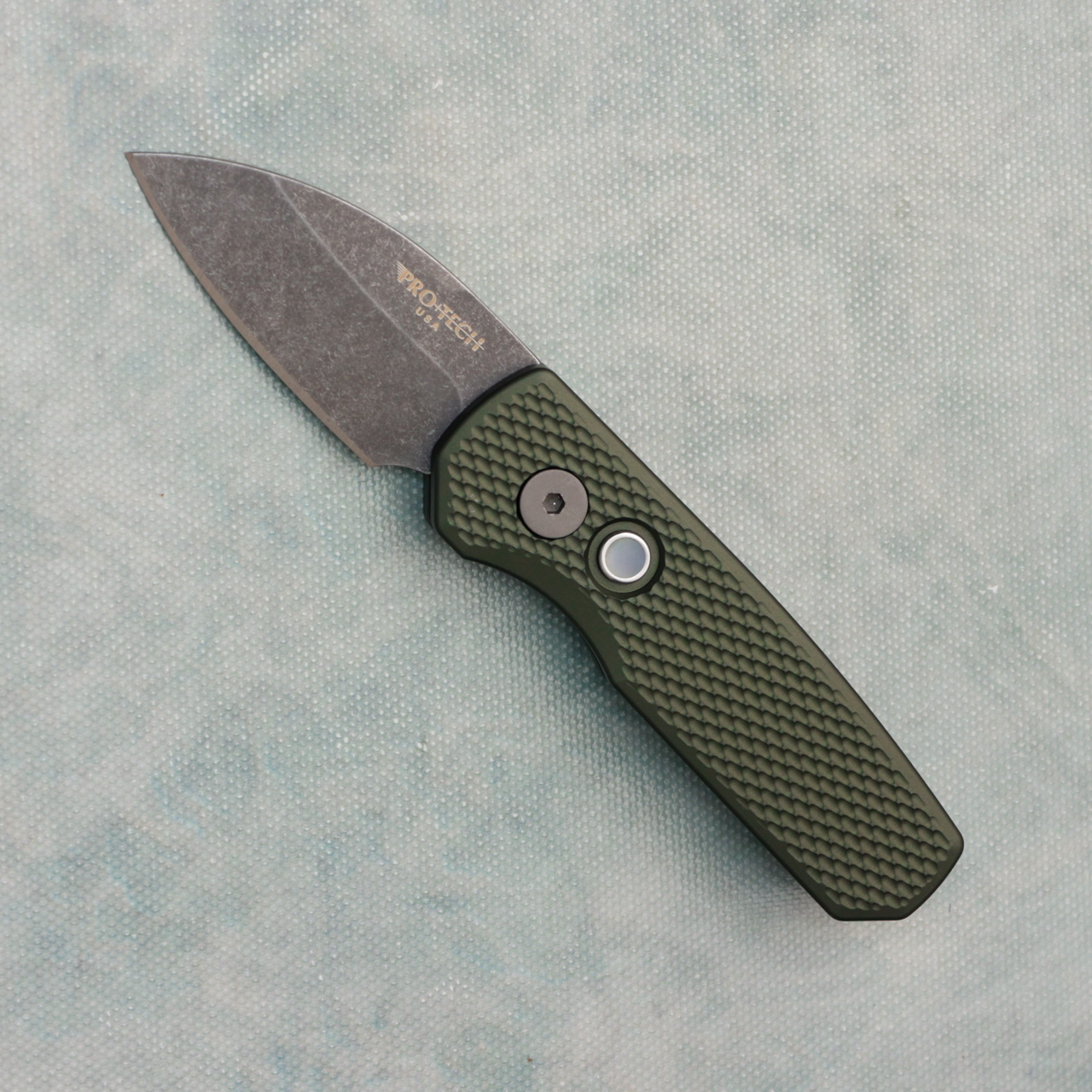 Pro-Tech Runt 5 Wharncliffe Textured Green Handle Acid Wash Blade (Consignment)