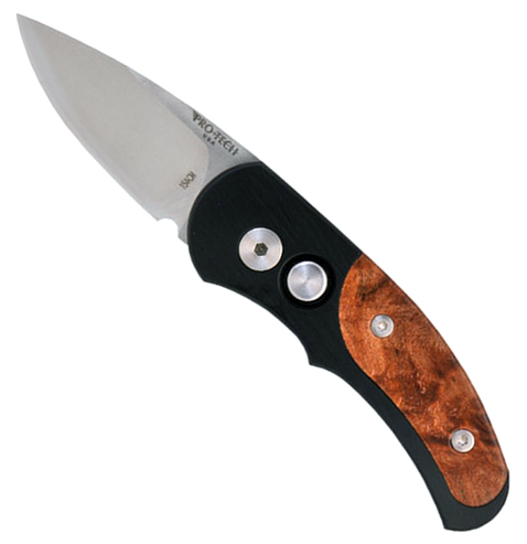 Pro-Tech Runt J4 Black w/ Maple Burl Wood Satin Blade 4406