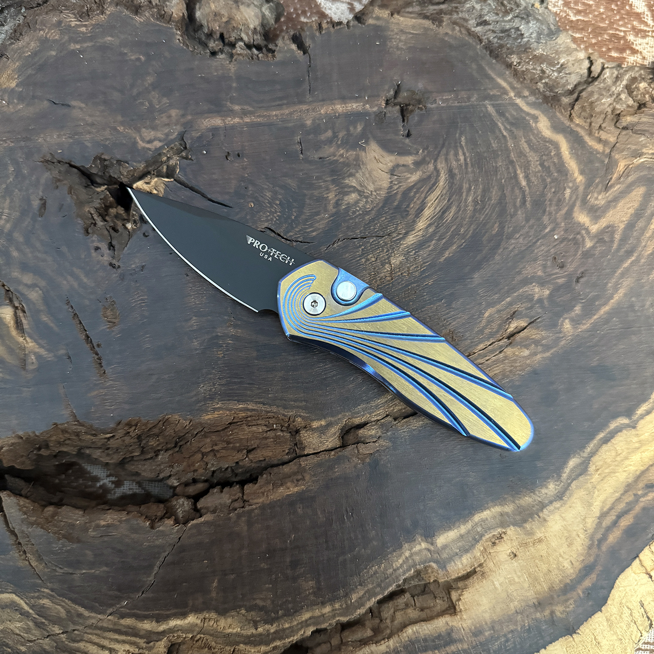 Pro-Tech Sprint Custom 3D Wave Bronze Blue Titanium Handle DLC Blade 2952