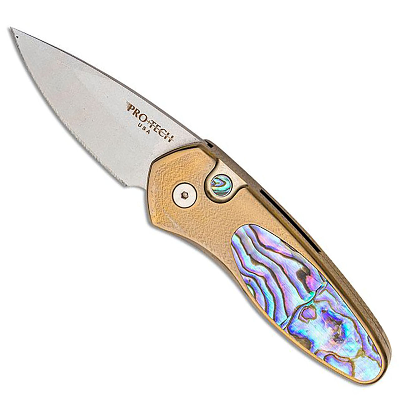 Pro-Tech Sprint Custom Bronze Titanium Handles w/Abalone Inlay Stonewashed Blade