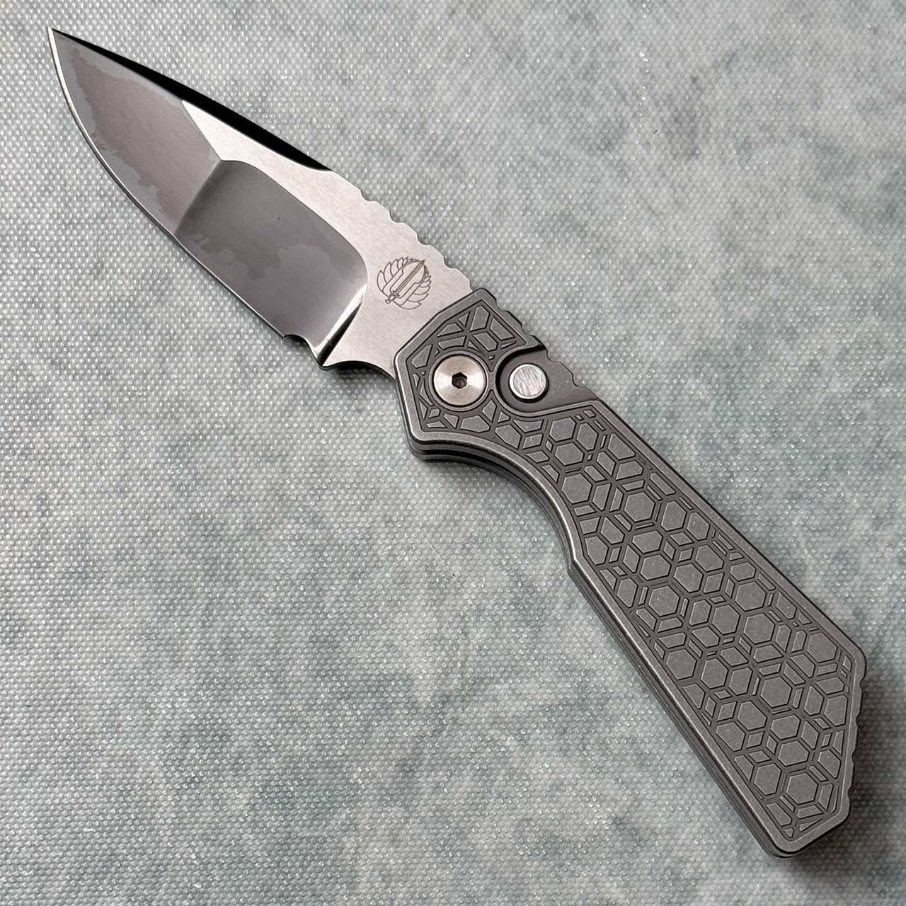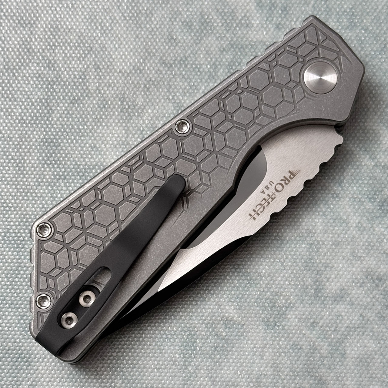 Pro-Tech Strider PT+ Auto Textured Gridlock 17-4 Steel Handle 2-tone DLC/Satin Mike Irie Hand Ground Blade Blade (BLEM)