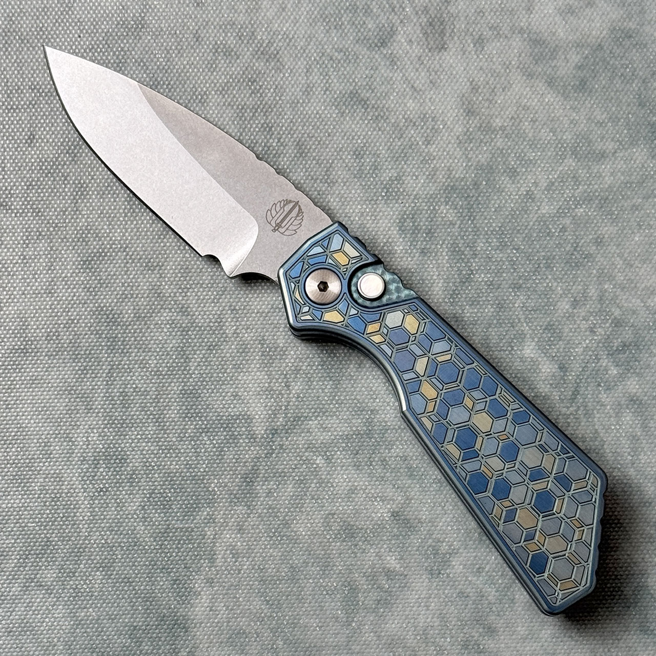 Pro-Tech Strider PT+ Auto Unique Anodized Blue/Gold Gridlock Titanium Handle Stonewash MagnaCut Blade