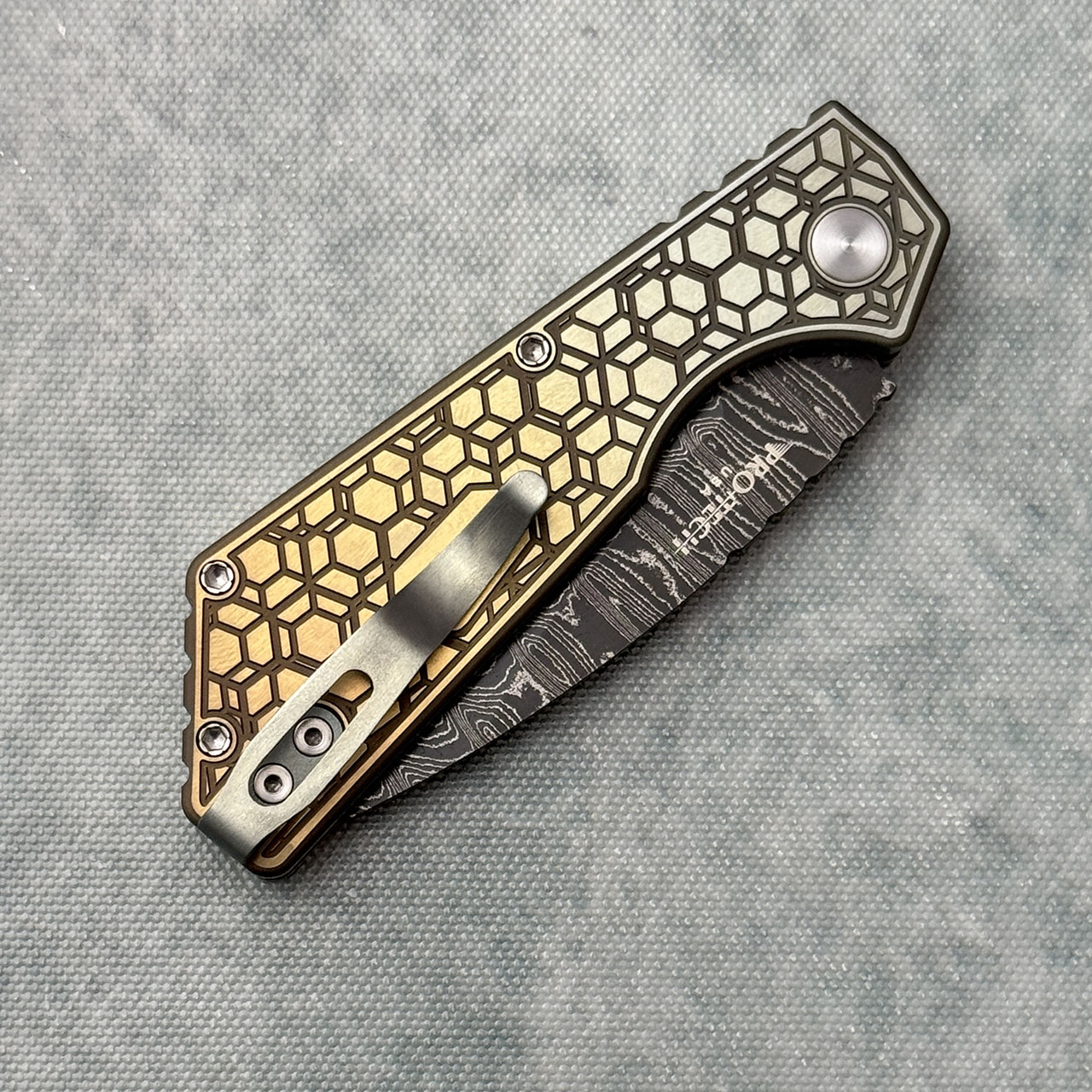 Pro-Tech Strider PT+ Auto Unique Anodized Green/Gold Fade Gridlock Titanium Handle Chad Nichols Damascus Blade