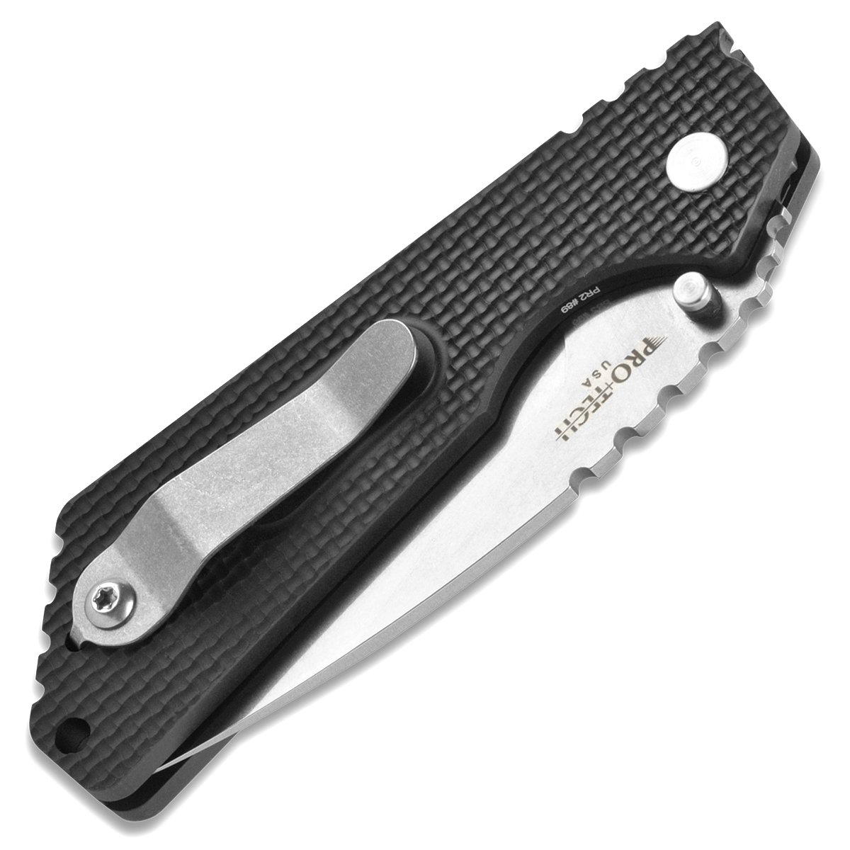 Pro-Tech Strider SnG Auto Knurl Texture Black Handle w/ Safety Stonewash Blade 2405