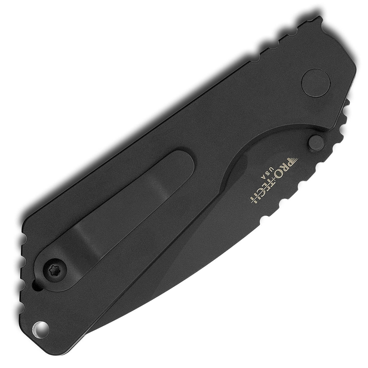 When you handle the ProTech SnG, it will feel instantly familiar. It is identical in size to the flat or standard profile SnG. Even the titanium pocket clip is in the exact same position as a manual frame-lock SnG. Much care was taken in keeping true to the original. The difference of course being the firing button that is perfectly recessed to prevent accidental firing, however with the milled relief, easy to find and activate when needed.