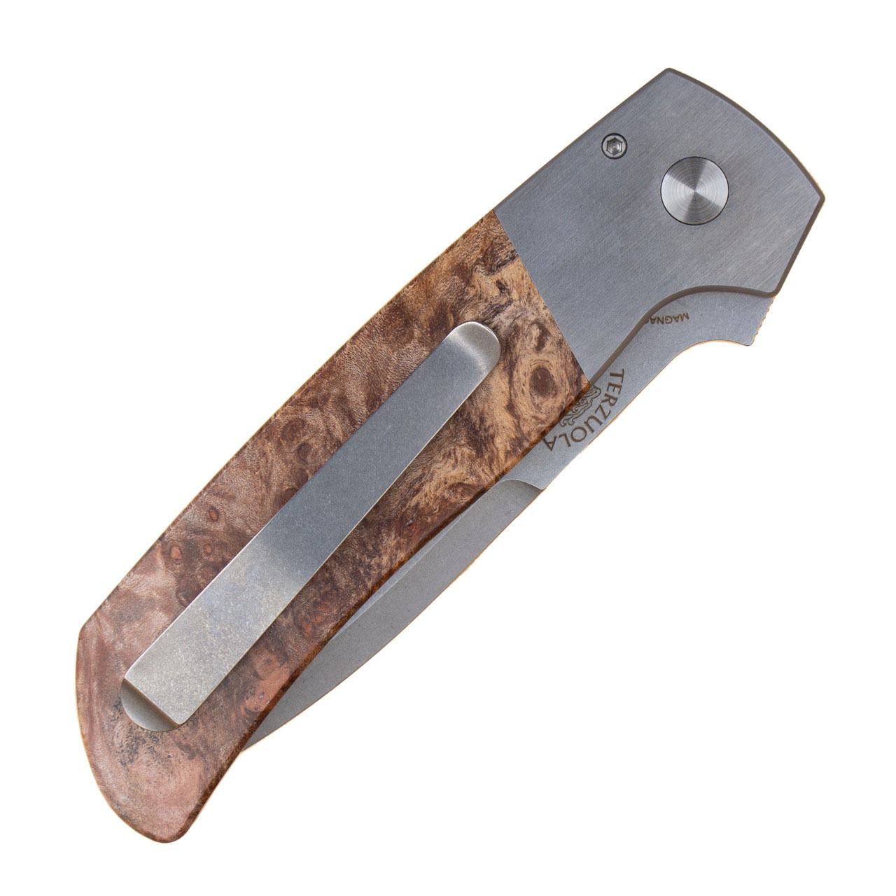 Pro-Tech Terzuola ATCF Auto Custom Steel Two Tone Matte/Satin Frame w/ Maple Burl Inlays Stonewashed Magnacut Blade Pearl Button 2023-ATCF-009
