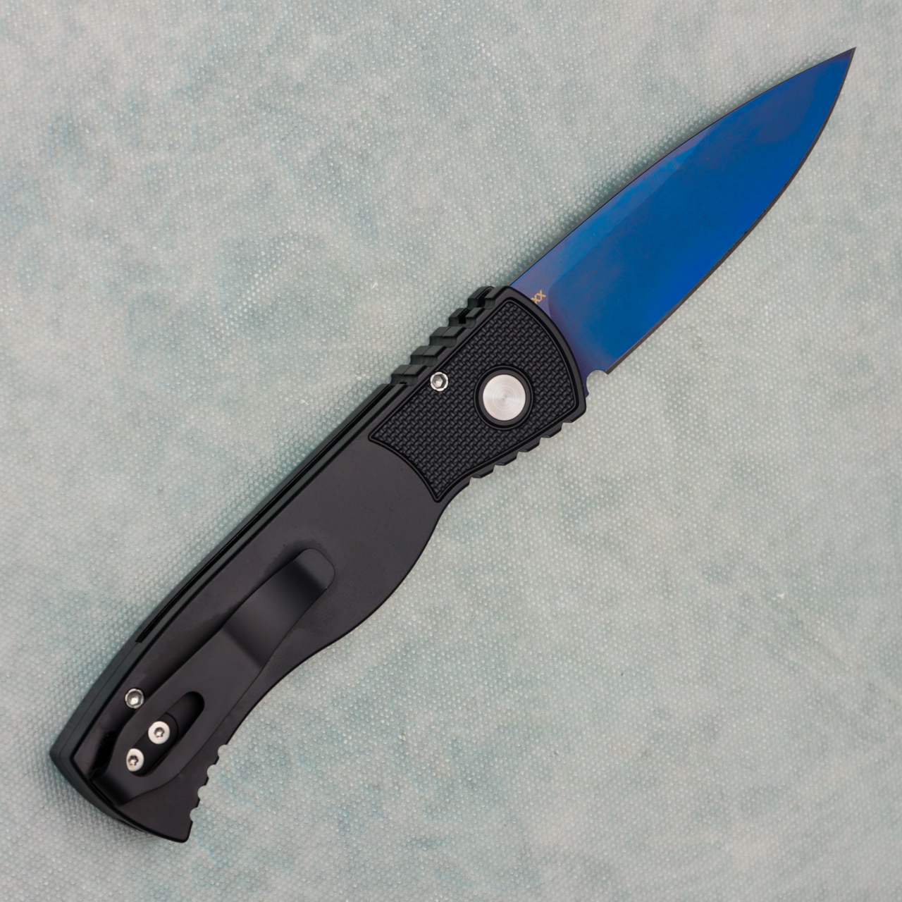 This model features a solid black anodized 6061-T6 aluminum handle with textured corners. Sapphire Blue CPM-MagnaCut stainless steel spear point blade. Black pocket clip. Abalone button. These function as they should, but have cosmetic blemishes in the blade finish or handle. The blemish is not available for warranty on the cosmetic blemish. They are marked with XX on back of the blade to identify that they are blems. Brand new in box.