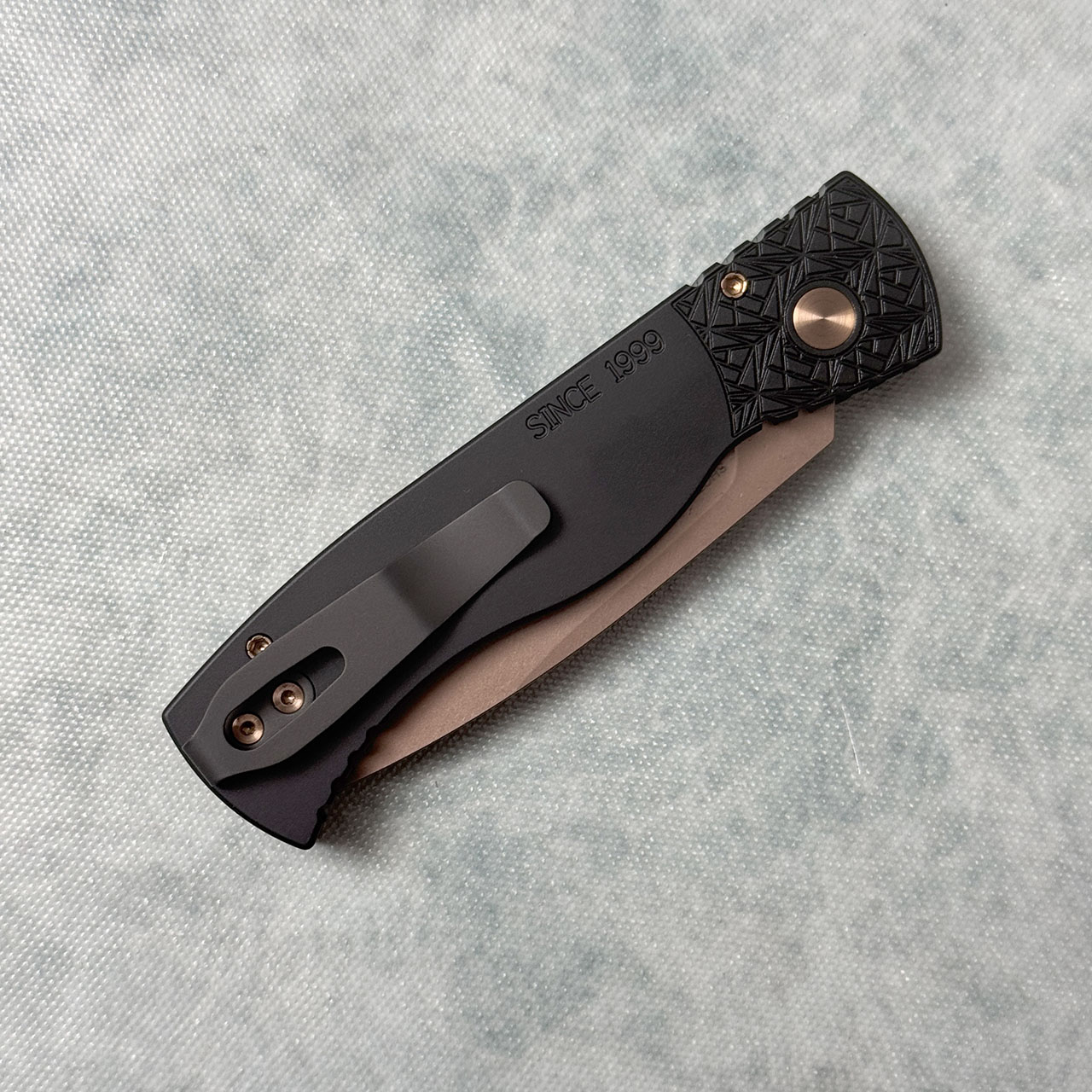 Pro-Tech TR-2 Auto Black Nexus Textured Handles Rose Gold MagnaCut Blade Prototype 2025SHOTTR-2.1
