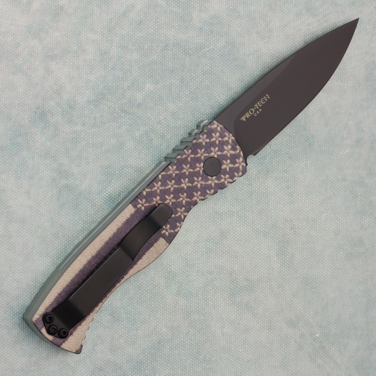 Pro-Tech TR-2 Auto PK Black/ White Flag Handle Black NJ-DC Shield Blade