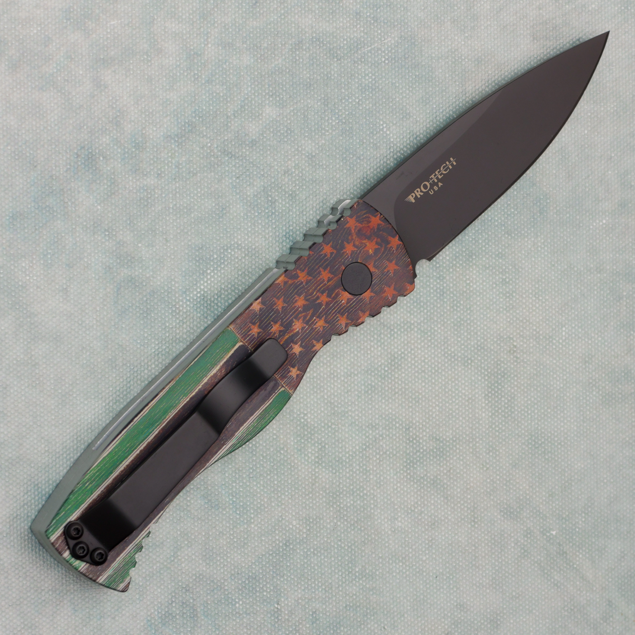 Pro-Tech TR-2 Auto PK Flag Handle Black NJ-DC Shield Blade
