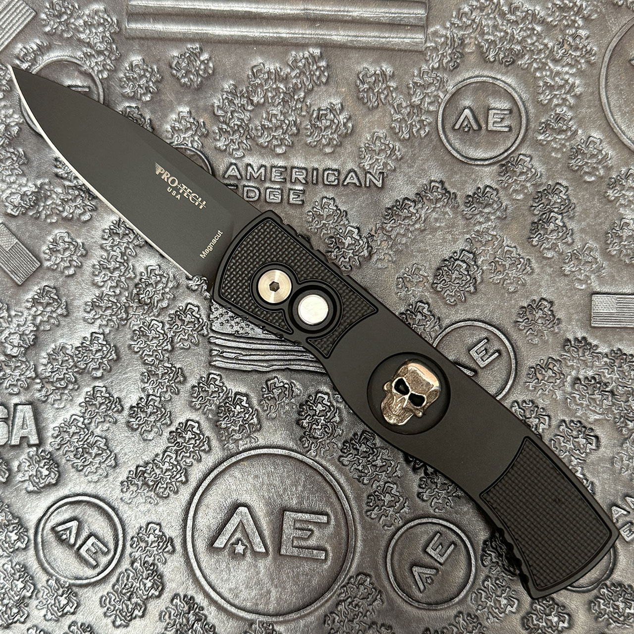 Pro-Tech TR-2 Skull Auto Black Handle W/Textured Corners DLC Black MagnaCut Blade Blade Show 2024