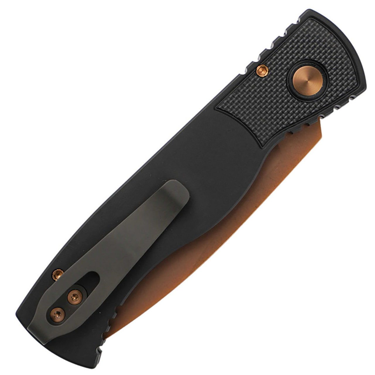 Pro-Tech TR-2 Skull Auto Black Handle W/Textured Corners Rose Gold MagnaCut Blade