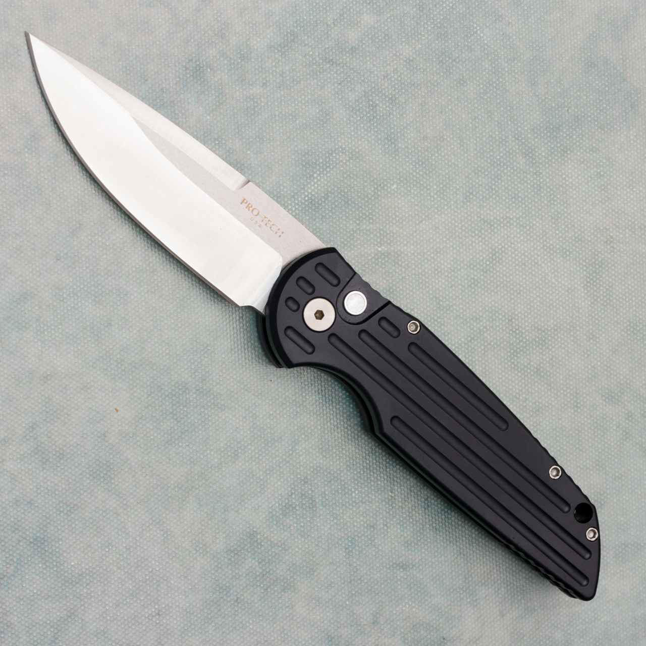Pro-Tech TR-3 Black Grooved Handle Satin 154CM Blade Pearl Button SHOT26.TR3.2