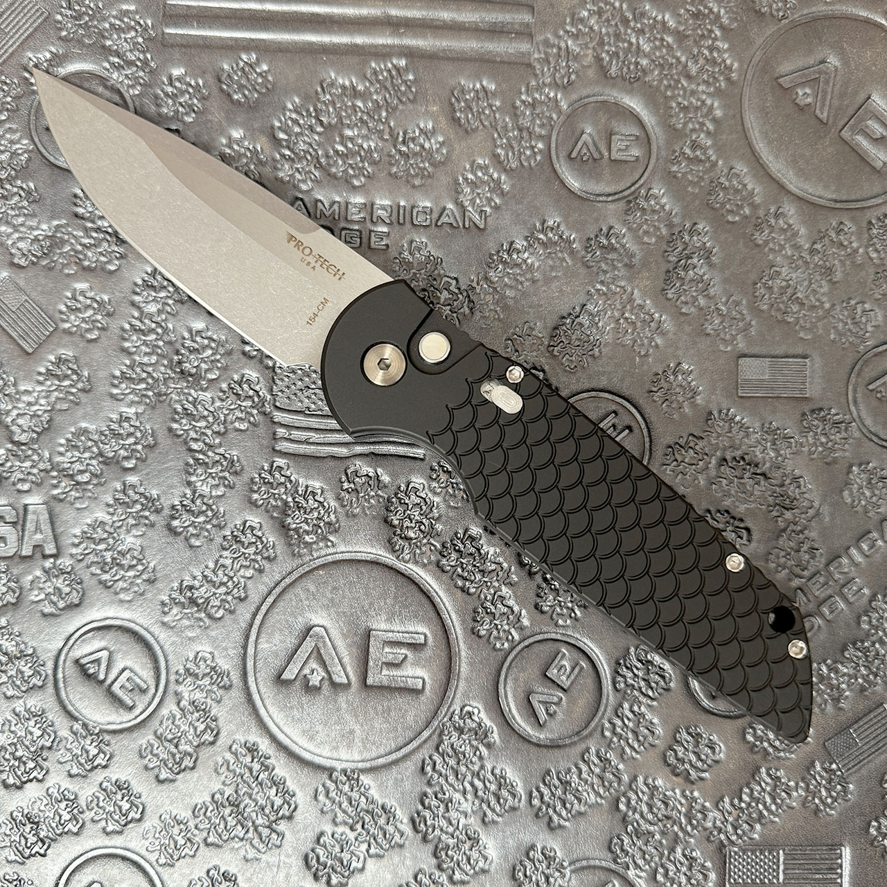 Pro-Tech TR-3 Blade Show 2024 Fish Scale Textured Black Handle w/ Safety Stonewash/Satin Blade