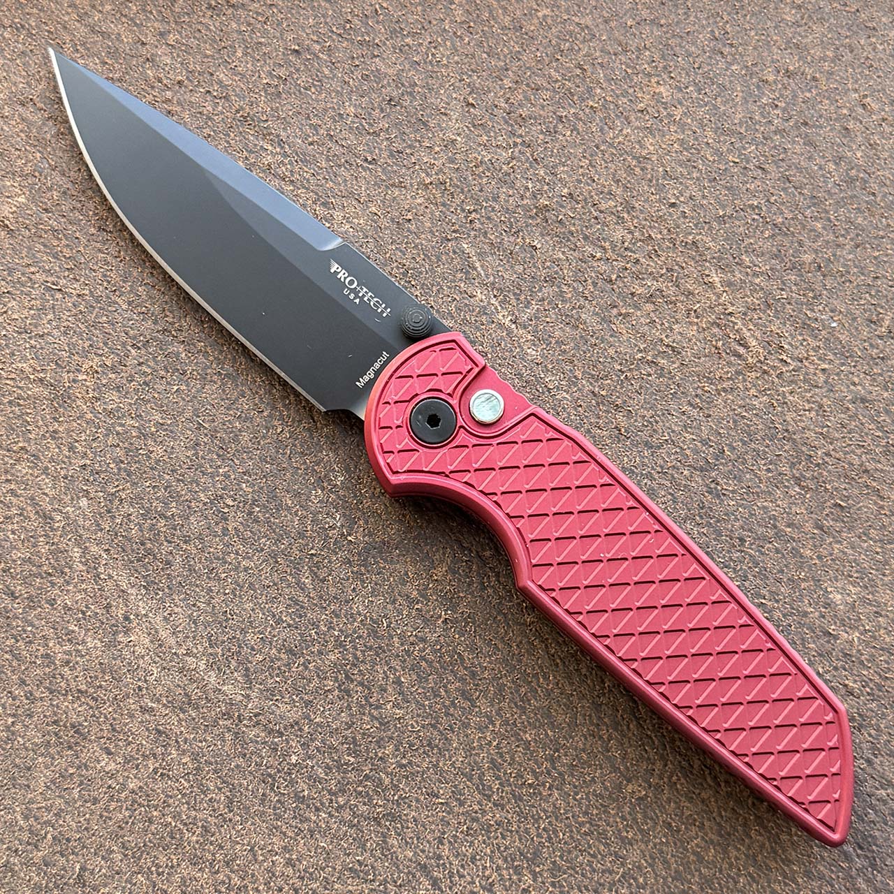 Pro-Tech TR-3 Integrity Button Lock Relic Textured Red Handle DLC MagnaCut Blade BST26.INT.2