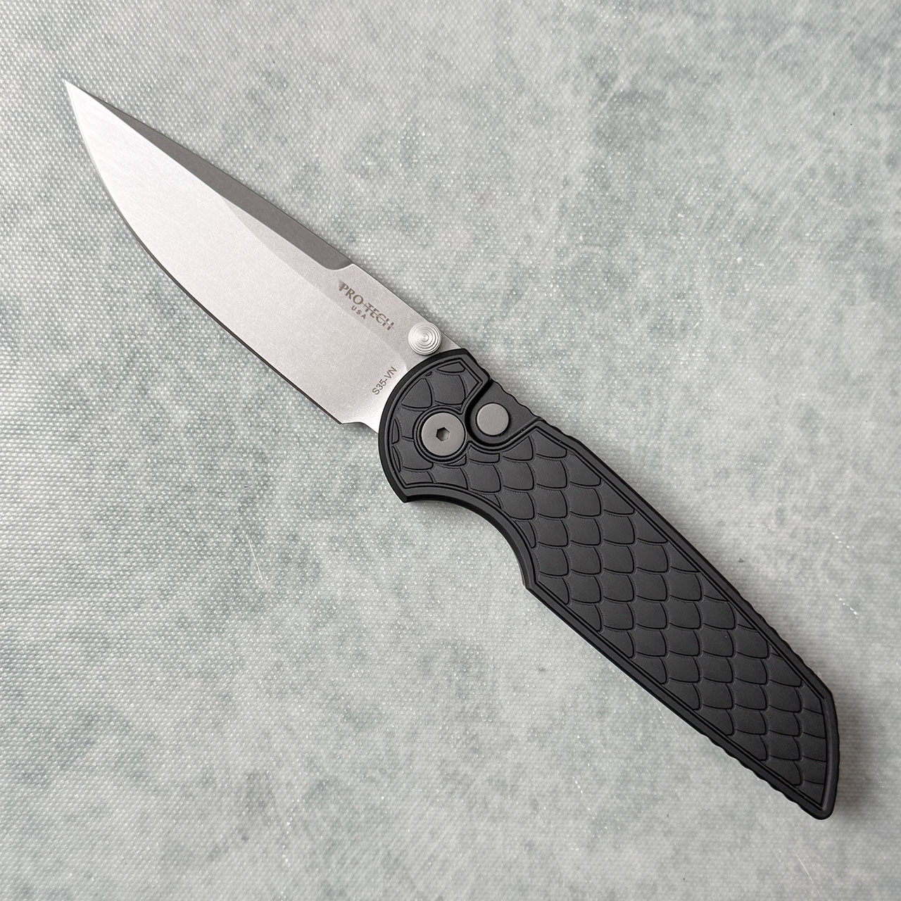 Pro-Tech TR-3 Integrity Button Lock Reptile Textured Black Handle Stonewash Blade INT105-REPTILE