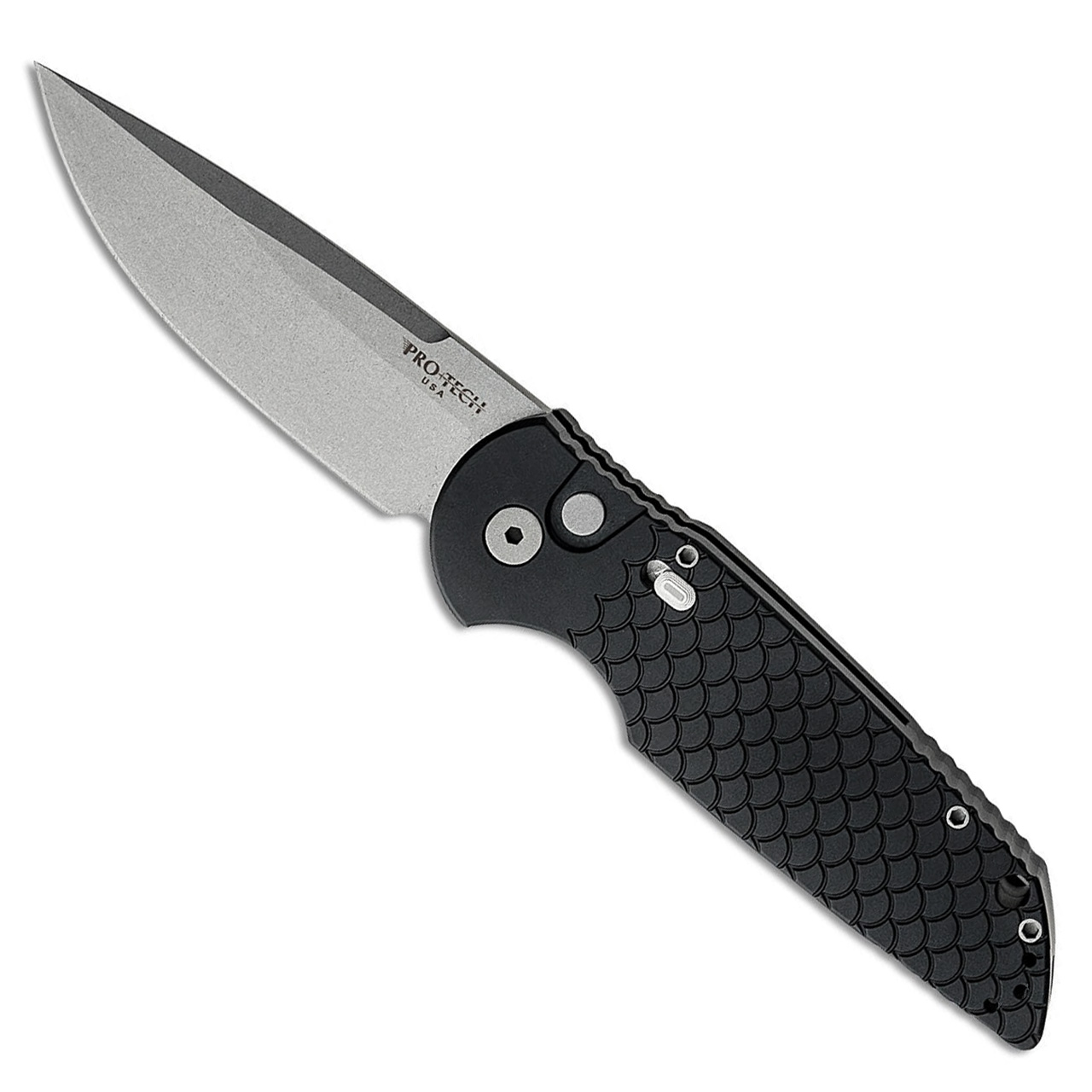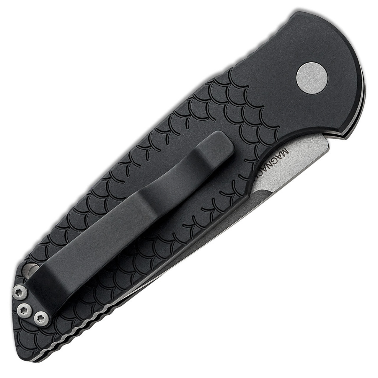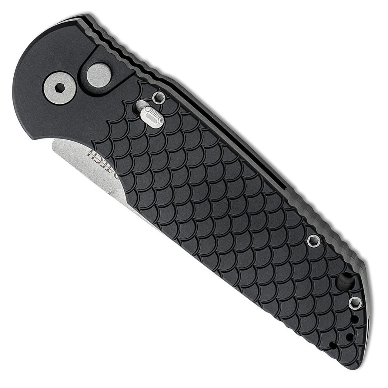 Pro-Tech TR-3 MC1 Fish Scale Textured Black Handle w/ Safety Stonewash Magnacut Blade
