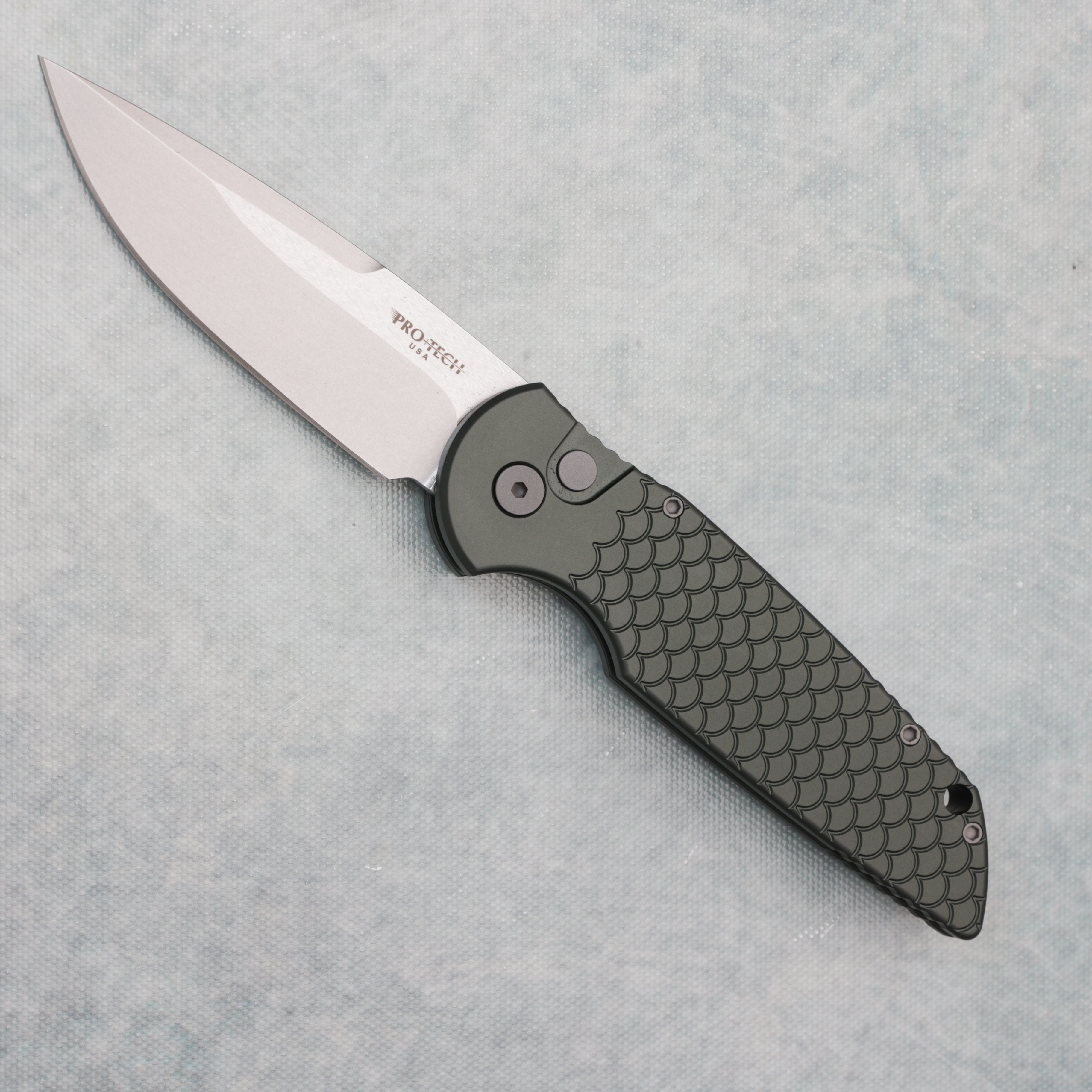 Pro-Tech TR-3 X1 Green Fish Scale Handle Stonewash Blade TR-3 X1 SW GREEN
