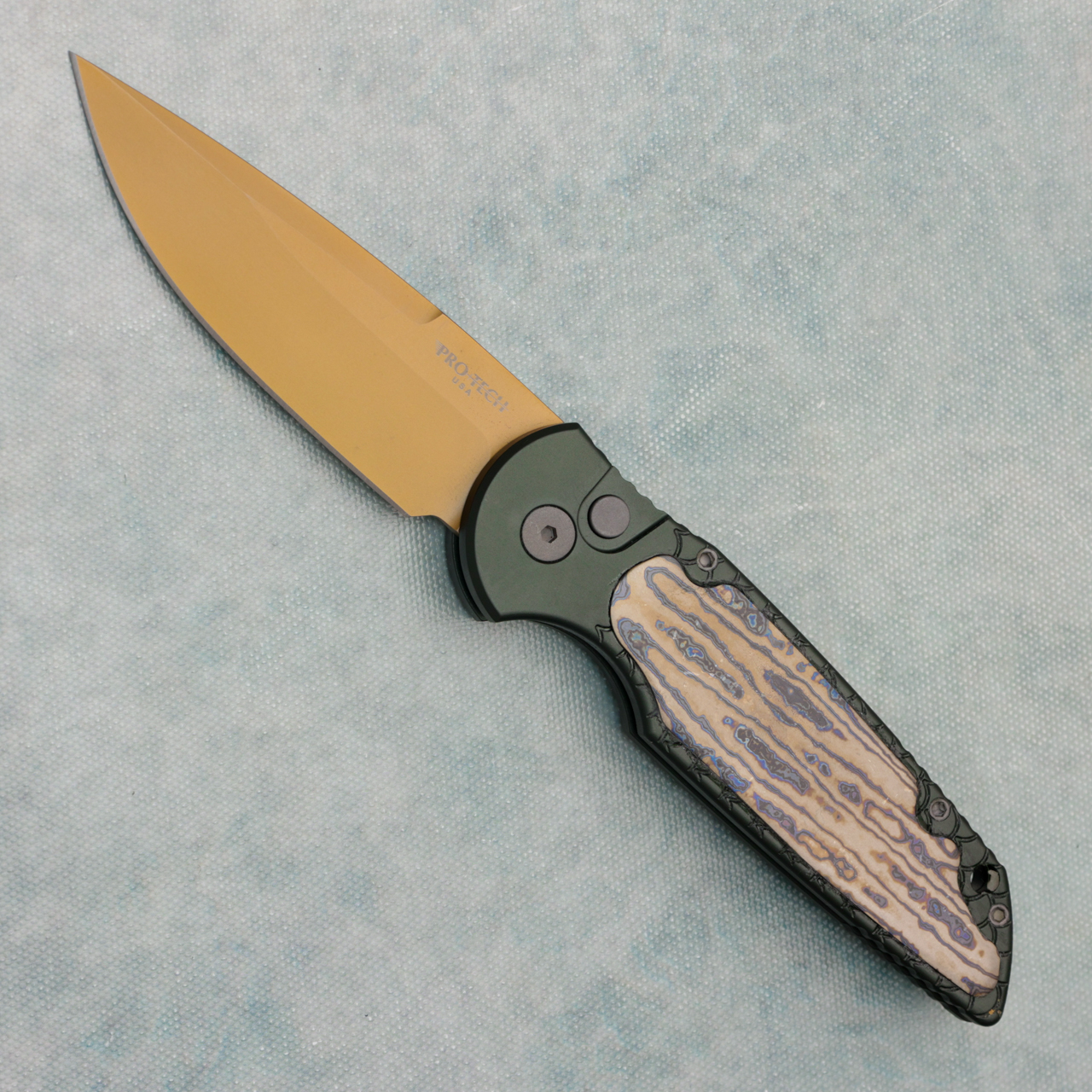 Pro-Tech TR-3 X1 SW Green Fish Scale Handle w/ Aftermarket Chad Nichols Zurcuti Inlay FDE PVD Magnacut Blade (Consignment)