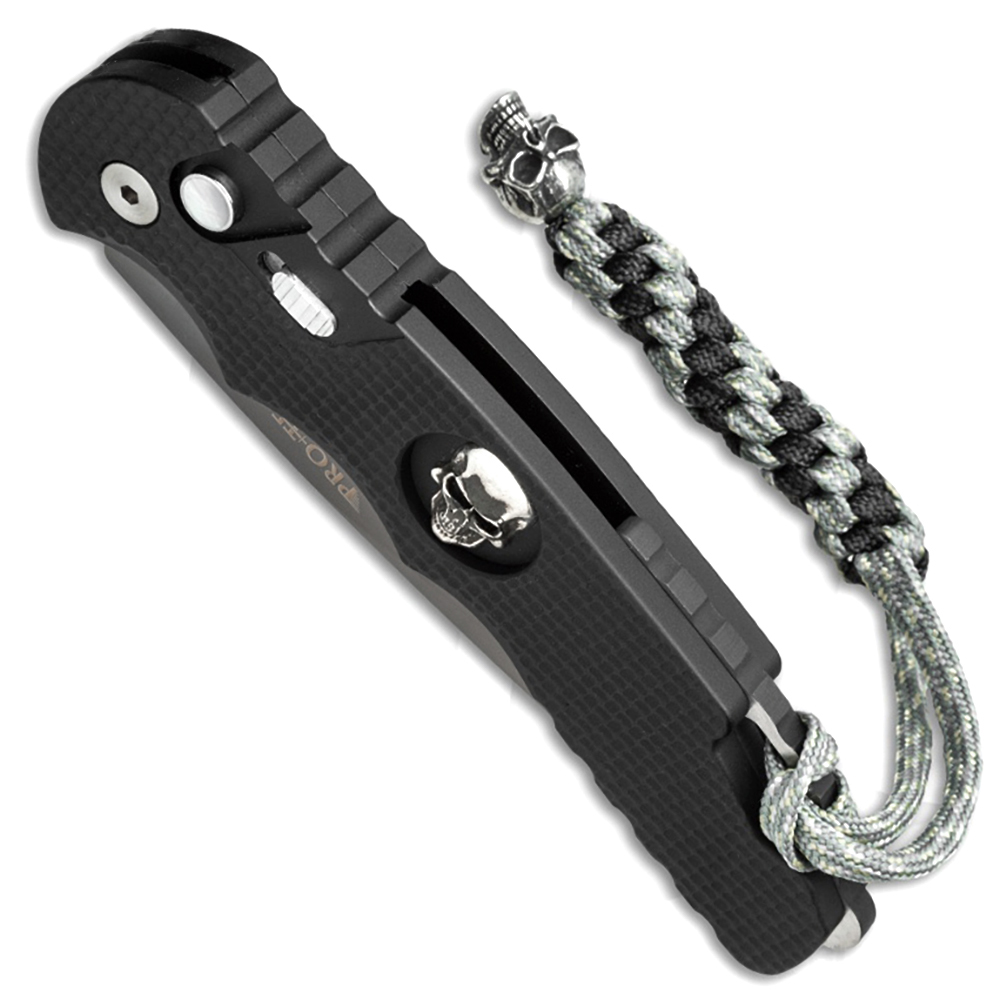 Pro-Tech TR-4.74 Skull Black Super Grip Textured Handle Smoky Gray DLC Blade Pearl Button Limited Edition