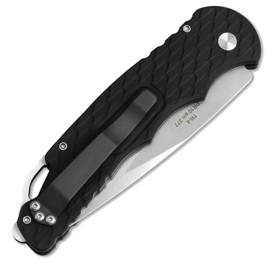 Pro-Tech TR-4 F5 Feather Textured Black Handle Stonewash Blade