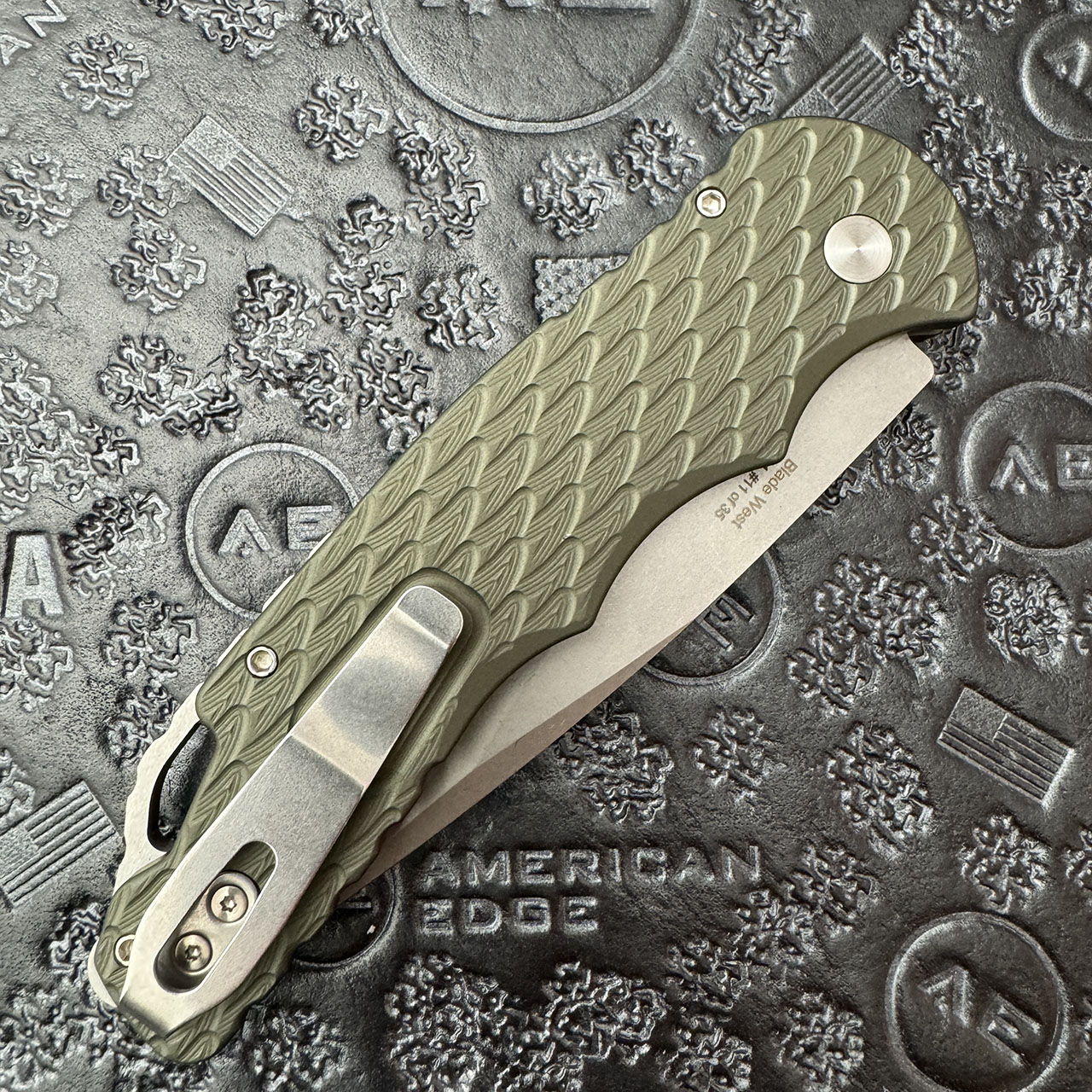 Pro-Tech TR-4 Feather Textured Green Handle Stonewashed MagnaCut Blade 2024BLADEWEST04