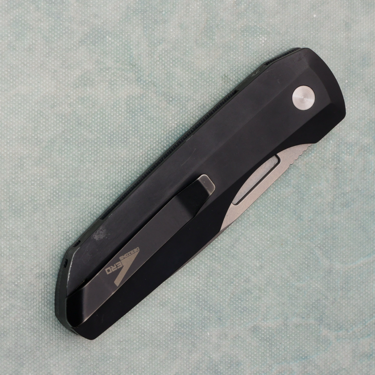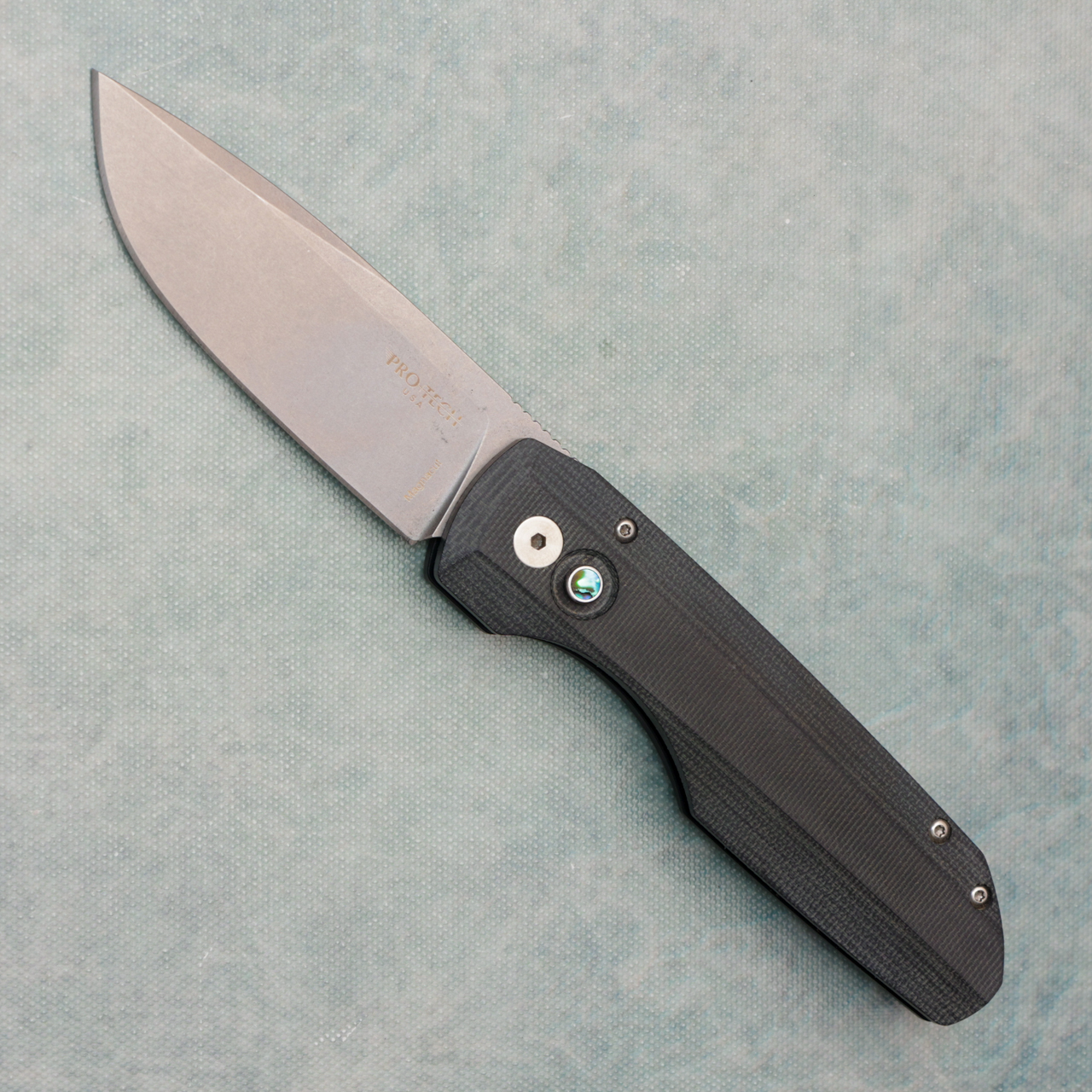 Pro-Tech Vero Synapse Black Aluminum Back Handle w/ Black Canvas Micarta Lid Stonewash Blade Pearl Button (Consignment)