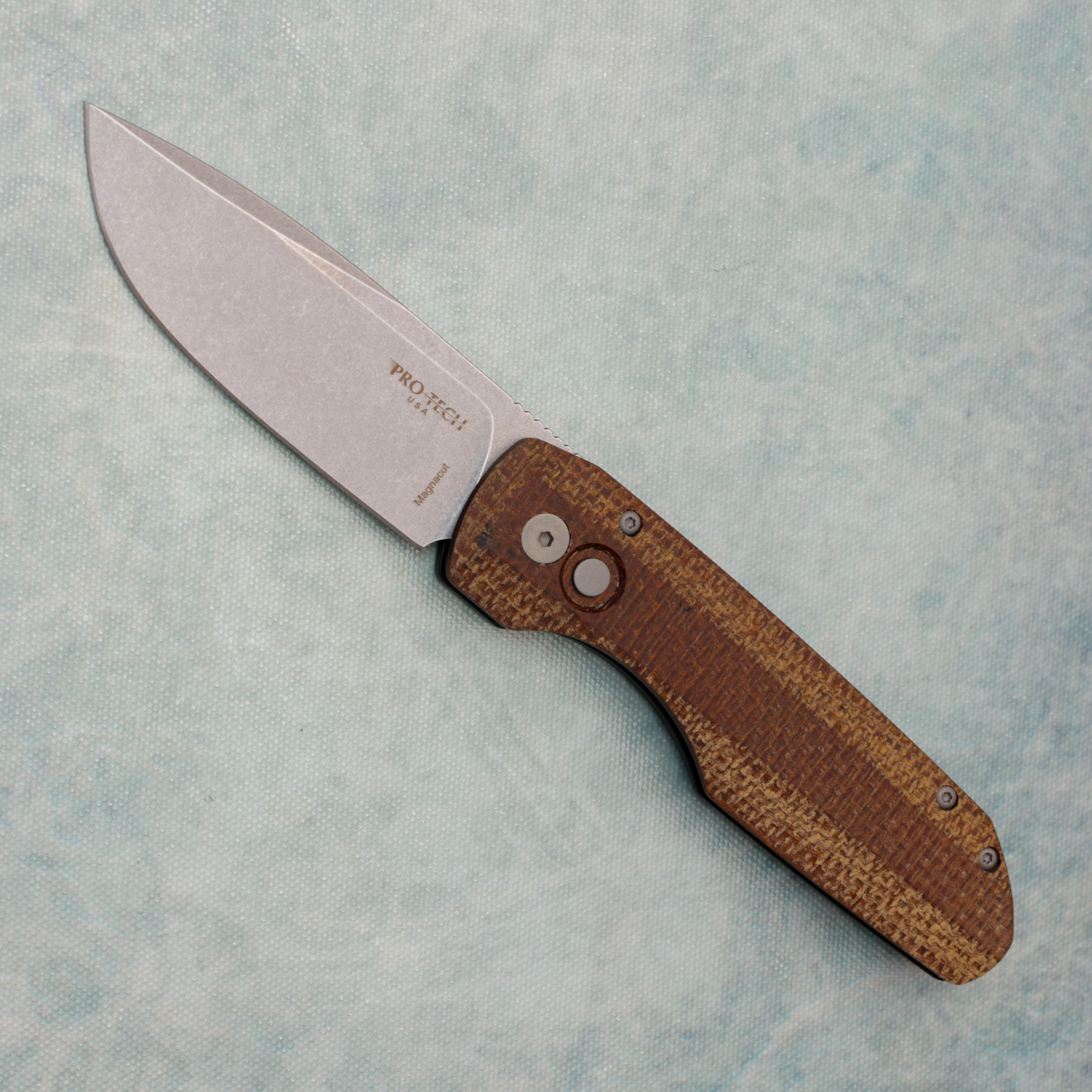 Pro-Tech Vero Synapse Black Aluminum Back Handle w/ Burlap Canvas Micarta Lid Stonewash Blade VERO1211-BURLAPMIC