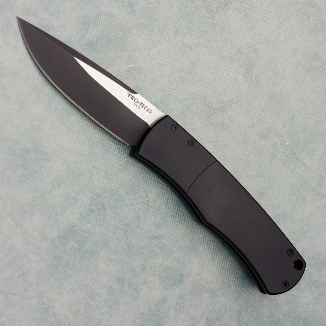 Pro-Tech Whiskers Magic BR-1 Proto Bolster Release Auto Solid Black Handle 2-tone Blade
