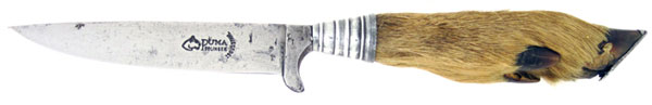 Unique genuine deer hoof handle. Stainless steel blade stamped PUMA SOLINGEN with the Puma knives logo. Integral finger guard. Aluminum furl. This beautiful old knife is in good condition for its age with just minor pitting on the blade that gives it some character. Comes with original leather and aluminum reinforced sheath.