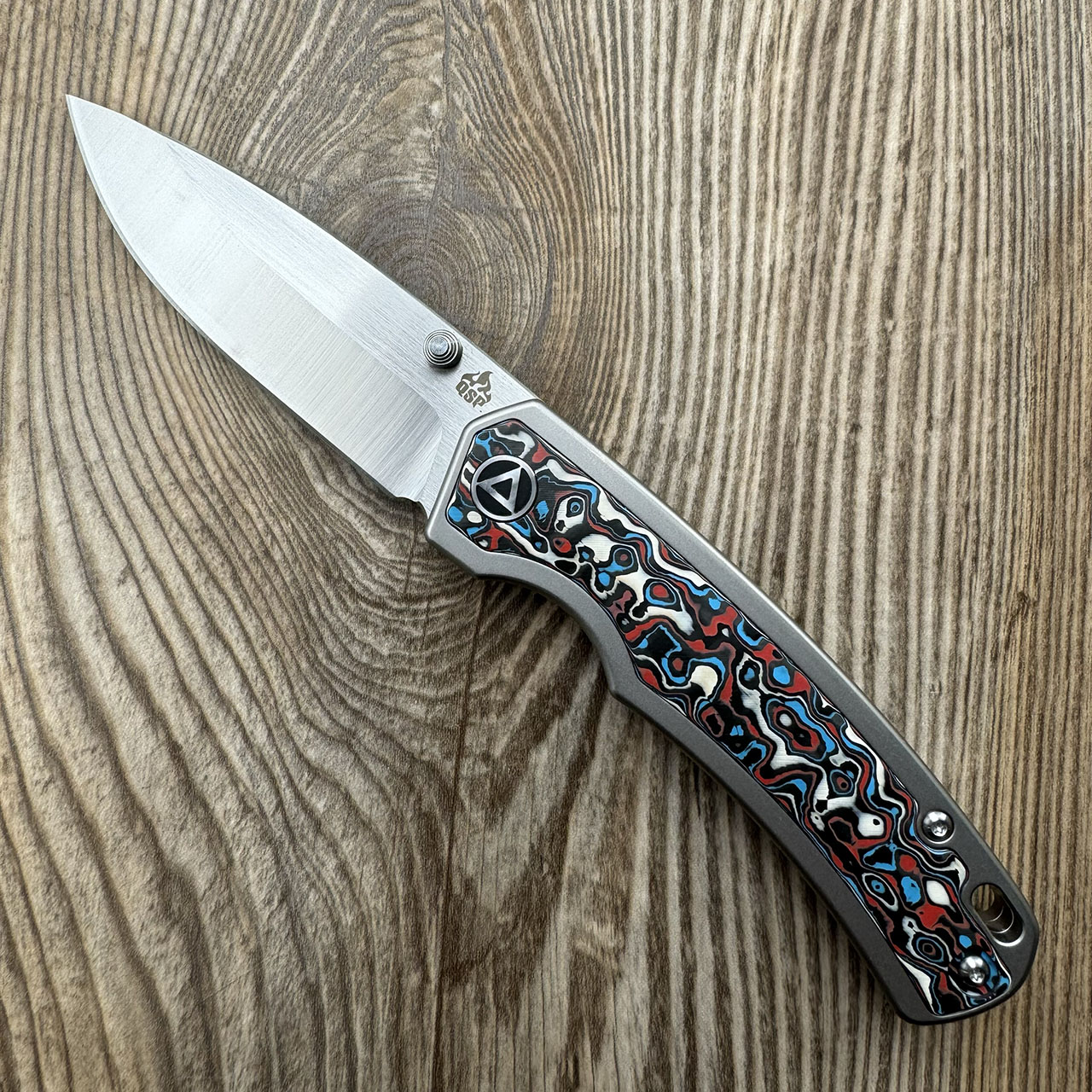 QSP Puffin Frame Lock Titanium Handles w/ Red/White/Blue Inlay Satin Blade QS127-G1 (Pre-owned)