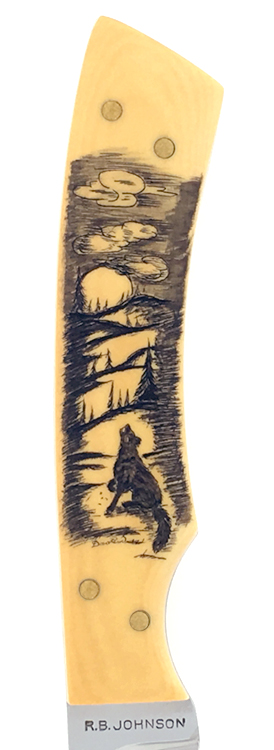R.B. Johnson Custom Drop Point Hunter Call of the Wild Scrimshaw