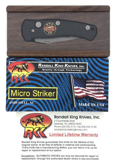 This is a California legal automatic knife. It's made with all the amazing technology that makes Randall King Knives some of the most sought after collectibles in the world. Blade design tolerances of as little as 5 ten thousands of an inch and ATS-34 steel with a Rockwell of 58-60. Awesome small automatic pocket knife. Brand new in box.