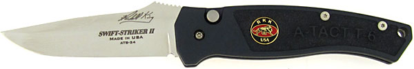 These Premier Edition knives feature a mirror polished ATS-34 high carbon stainless steel blade with a jimped thumb ramp on spine. Gunmetal grey billet aluminum handle with RKK exclusive Hydro Plasma Intaglio enhanced gripping surface also has inlaid shield, pocket clip, lanyard hole and lock to secure open or closed. Premiere Edition ships in solid hardwood display box box is a little scuffed up, still solid. The action on this knife is second to none, it slams out hard.