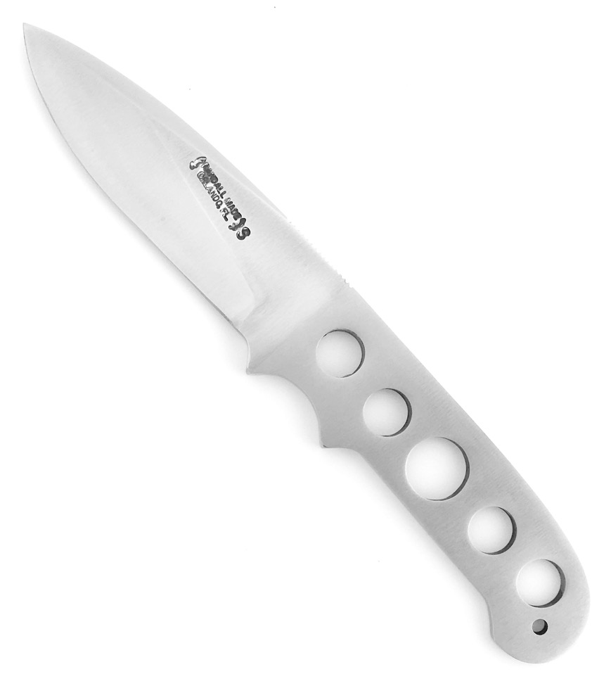 This is a great example of Randall Made Knives. The Triathlete is made to be carried when a lightweight, yet sturdy knife is needed. Carry it while you run, bike, or just anytime. You will be glad you have it at the ready. Solid one piece stainless steel construction. Satin blasted skeletonized handle with lanyard hole. Satin finished drop point blade. Thump jumping on the spine. Comes new with high quality black leather boot clip sheath.