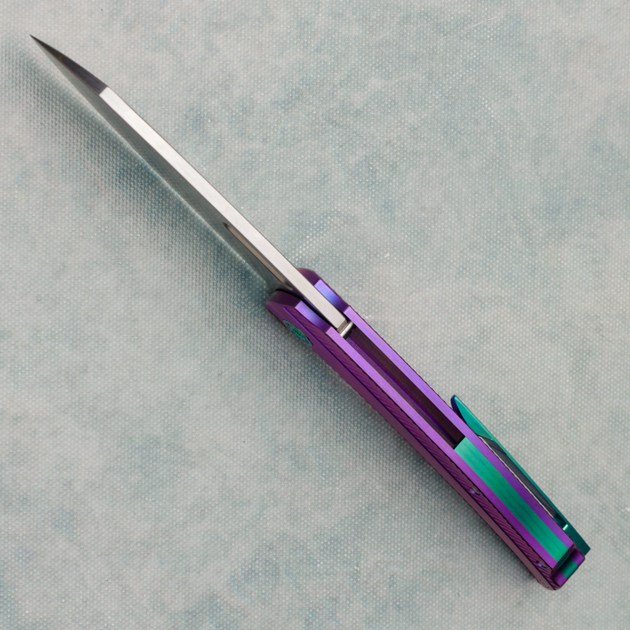 Rangermade Knife and Tool OBJ-1 Frame Lock Striped Purple Titanium Handle Blasted Satin Blade