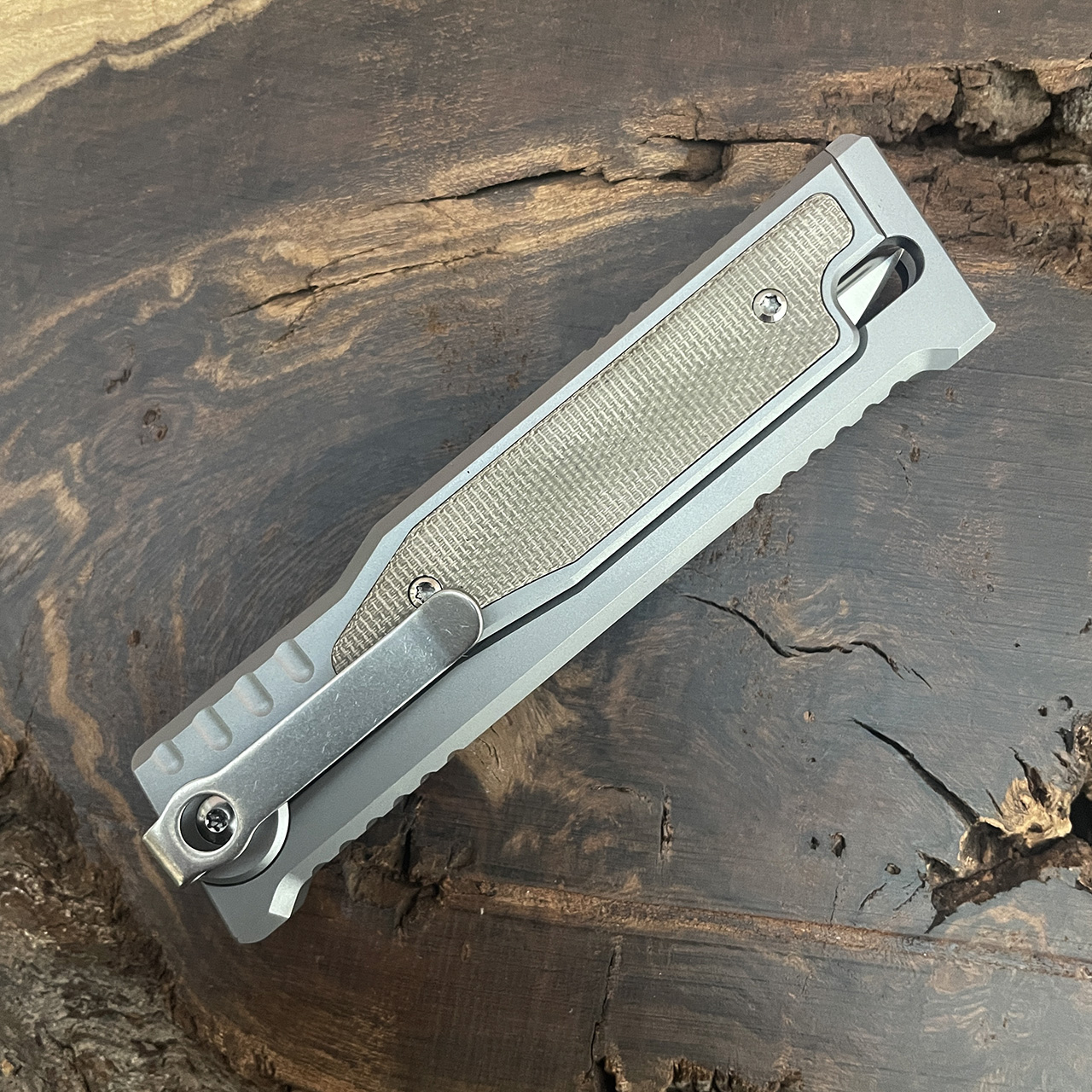 Reate EXO M D/E Gravity Knife Titanium Handle w/ Green Micarta Inlay Satin Standard Blade