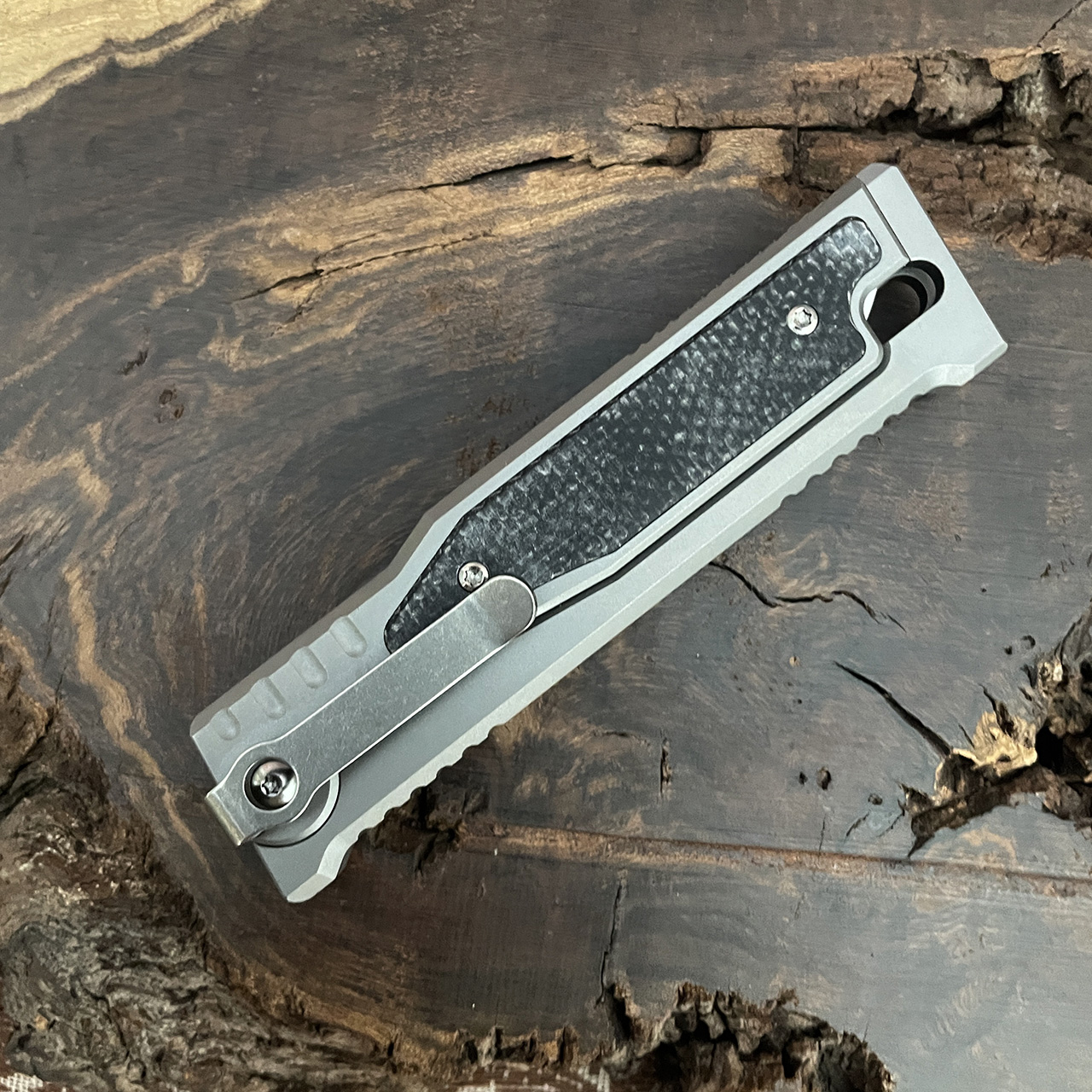 Reate EXO M S/E Gravity Knife Titanium Handle w/ Black Micarta Inlay Satin Standard Blade