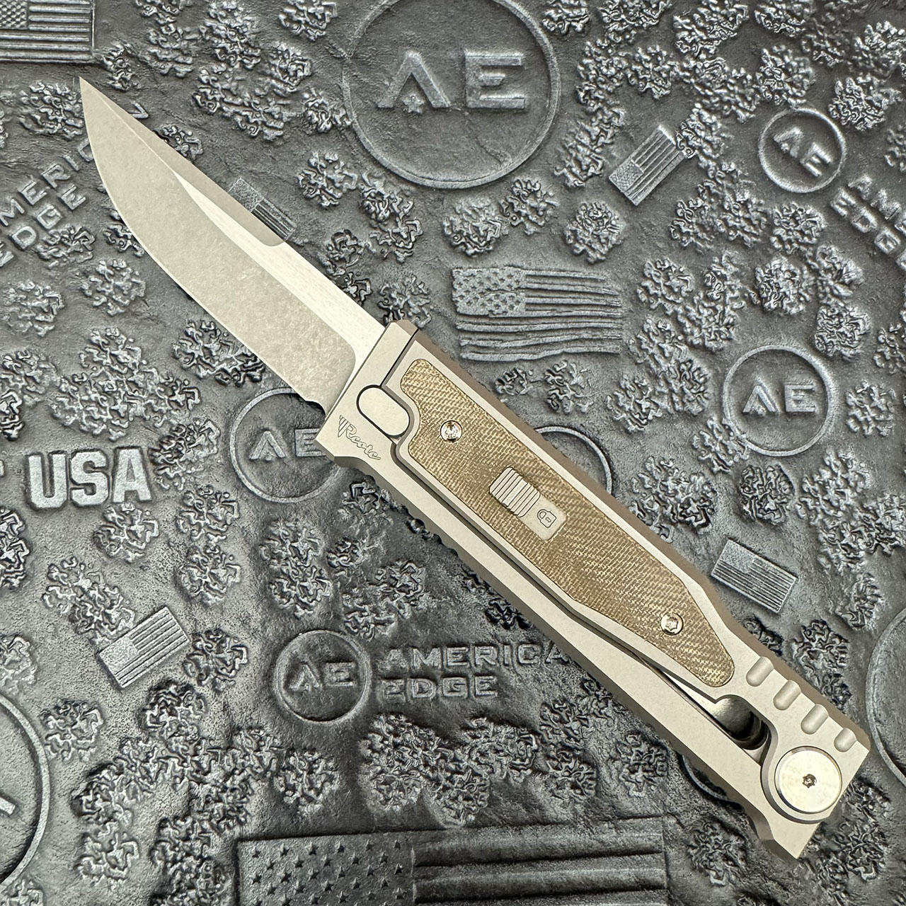 Reate EXO M S/E Gravity Knife Titanium Handle w/ Green Micarta Inlay Stonewashed Standard 3V Blade (Pre-owned)