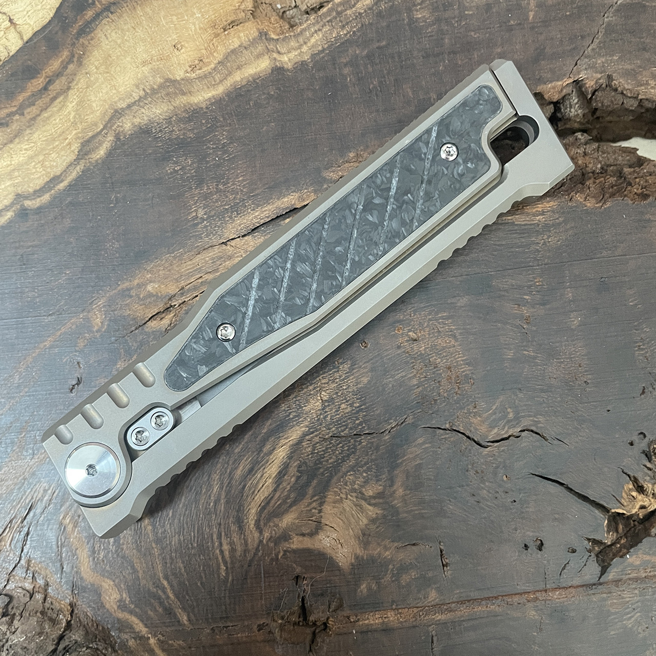 Reate EXO T/E Gravity Knife Bronze Titanium Handle w/ Marbled Carbon Fiber Inlay Stonewash Standard Blade