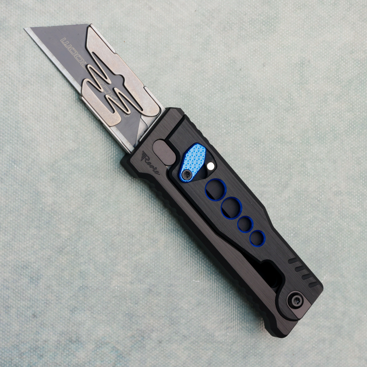 Reate EXO-U Utility Gravity Knife Black Aluminum w/ Blue Speed Hole Handles