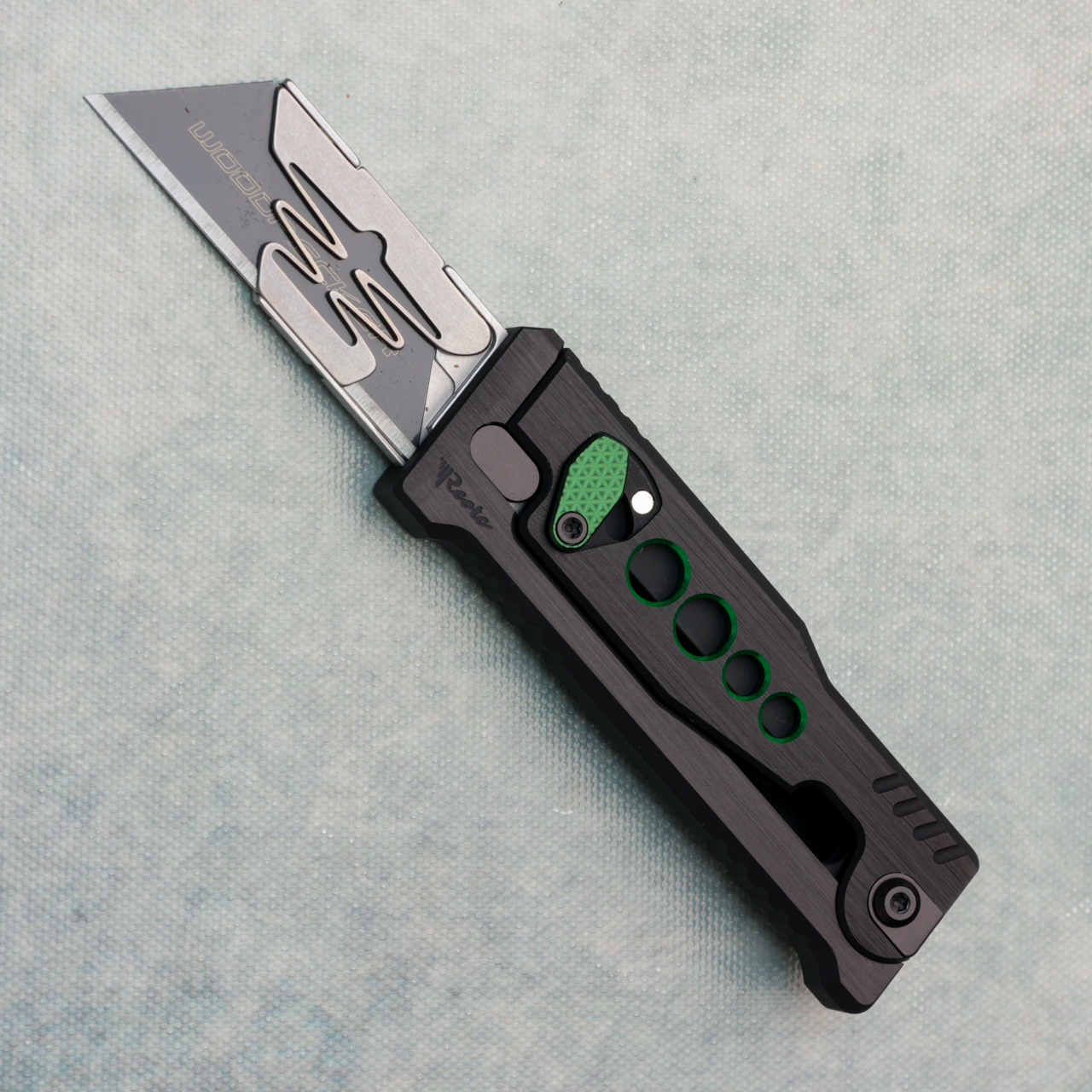 Reate EXO-U Utility Gravity Knife Black Aluminum w/ Green Speed Hole Handles