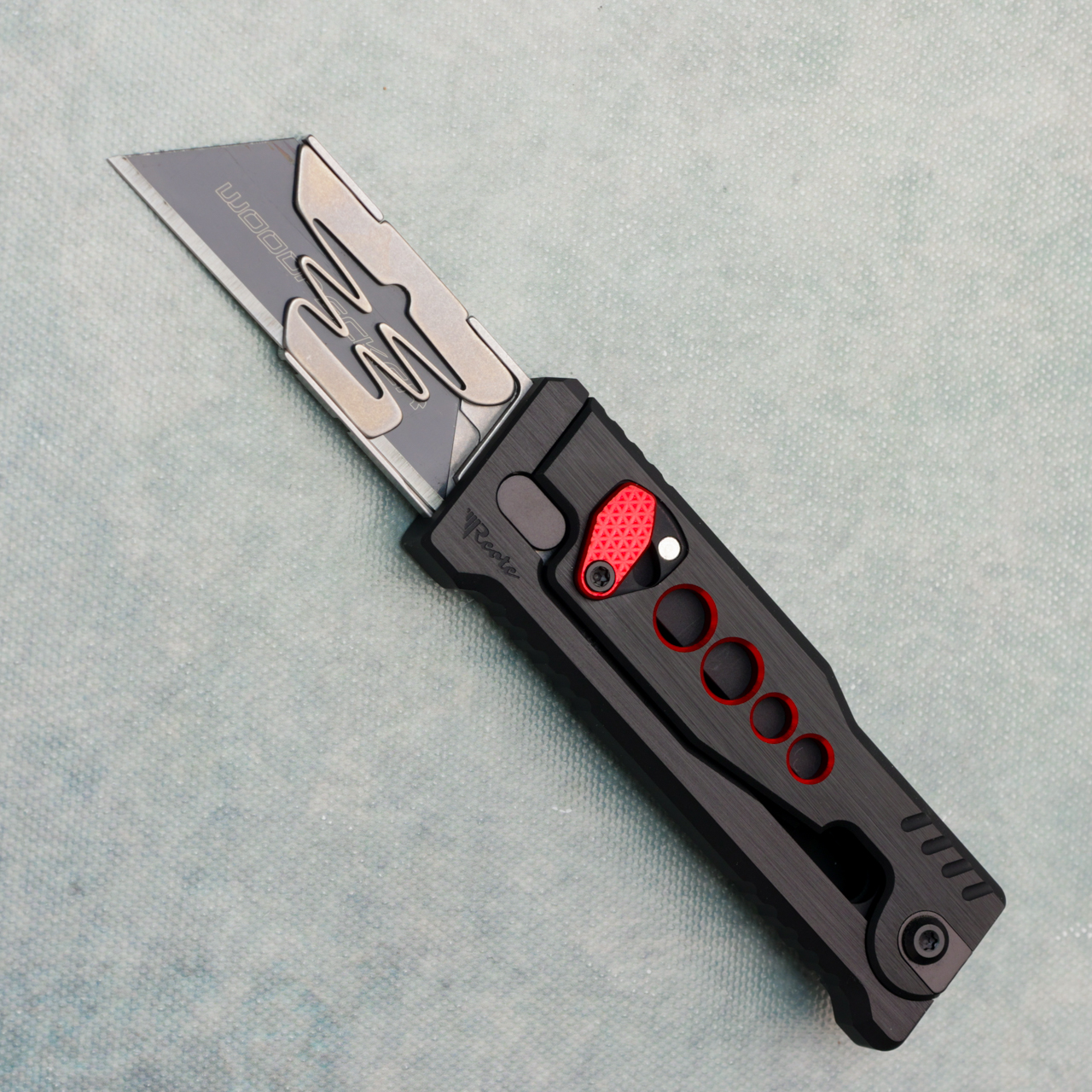 Reate EXO-U Utility Gravity Knife Black Aluminum w/ Red Speed Hole Handles