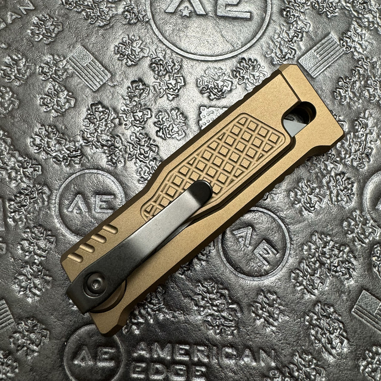 Reate EXO-U Utility Gravity Knife Bronze Aluminum Diamond Patterned Handles