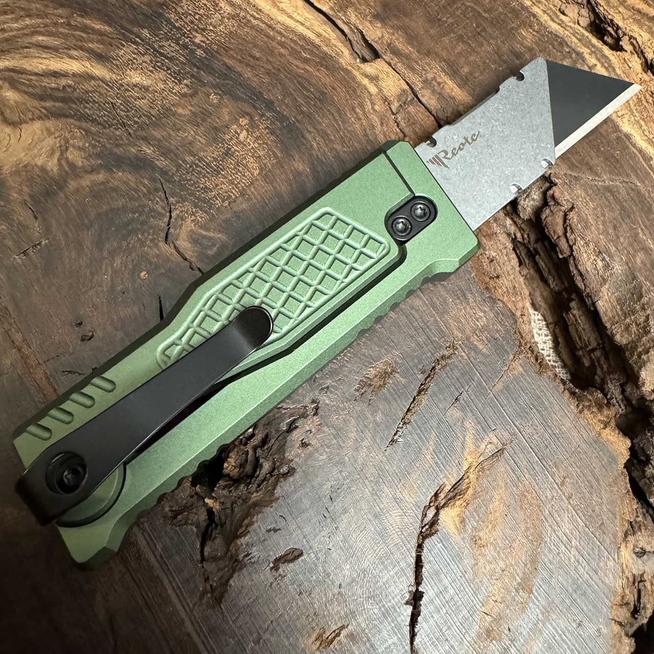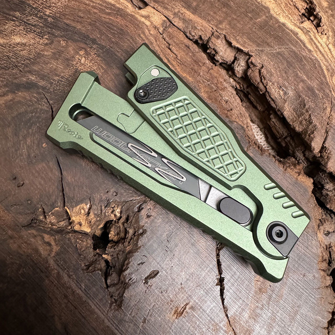 Reate EXO-U Utility Gravity Knife Green Aluminum Diamond Patterned Handles