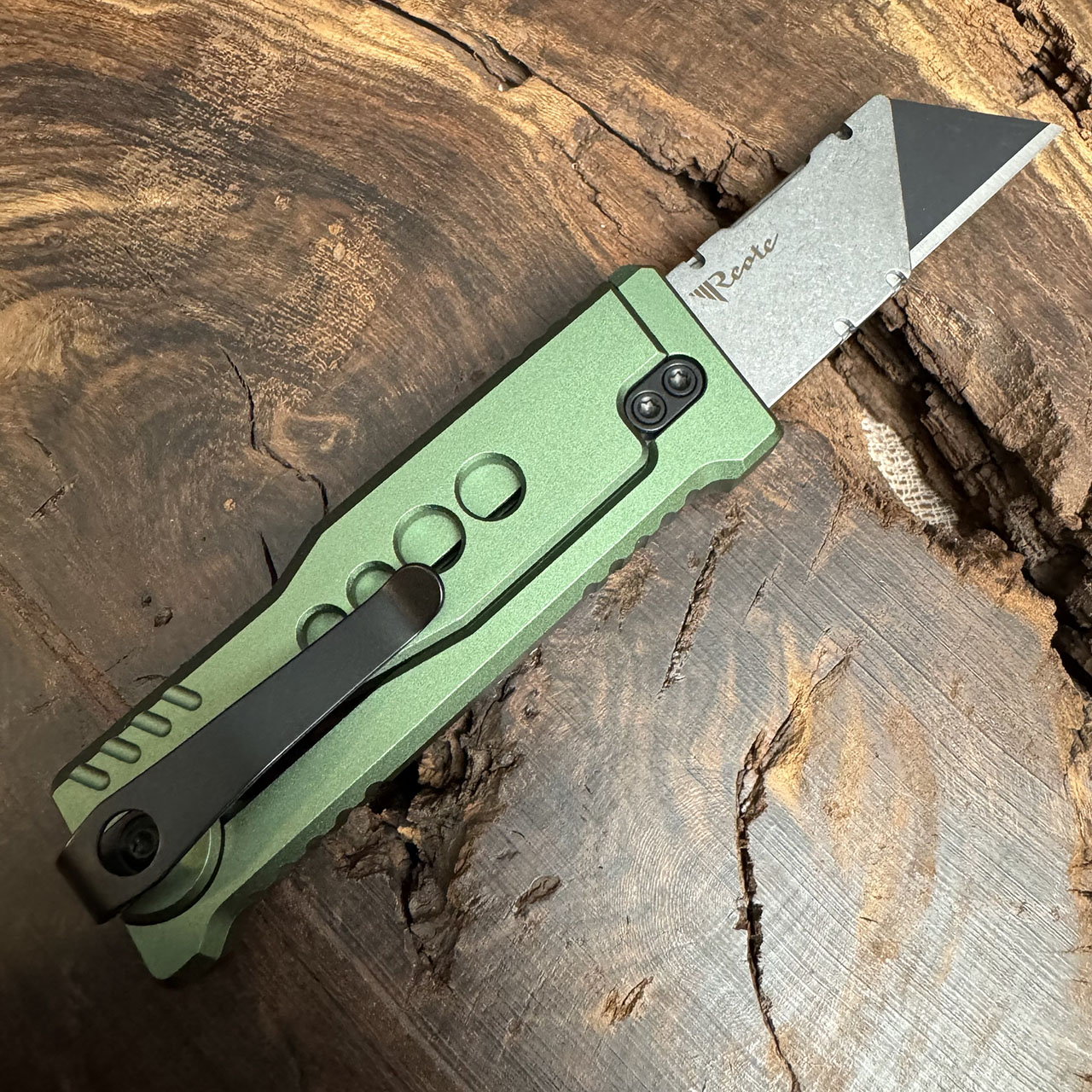 Reate EXO-U Utility Gravity Knife Green Aluminum Speed Hole Handles