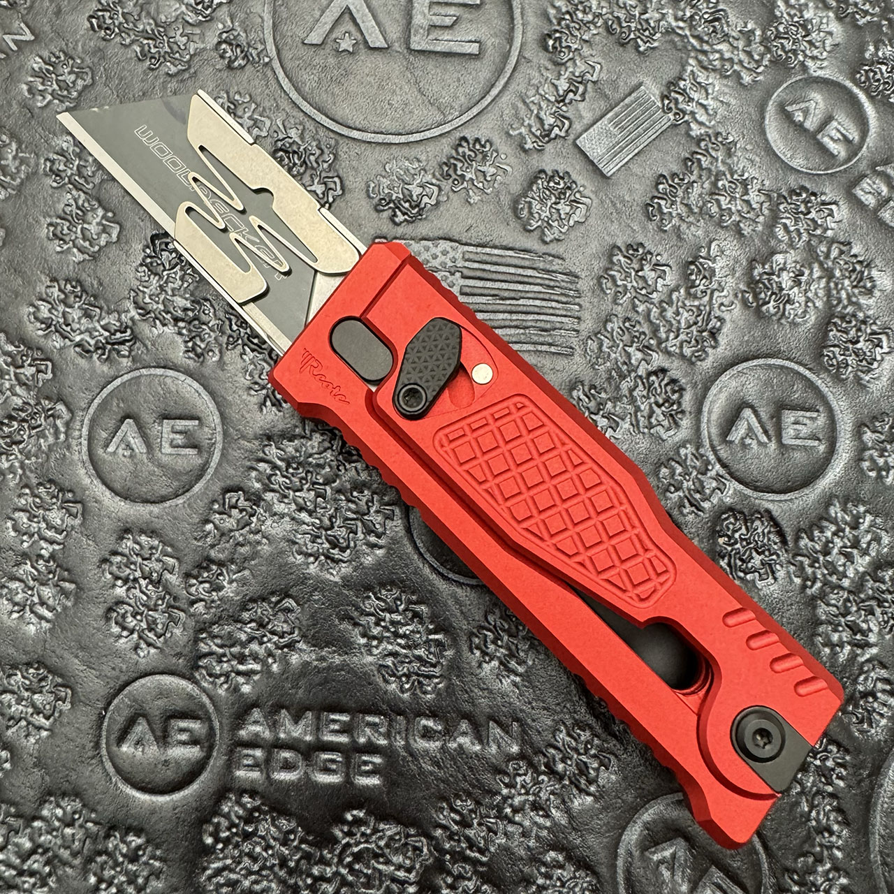 This model features red diamond pattern aluminum handles. Stainless steel utility blade, and deep carry reversible pocket clip. Brand new in box.
