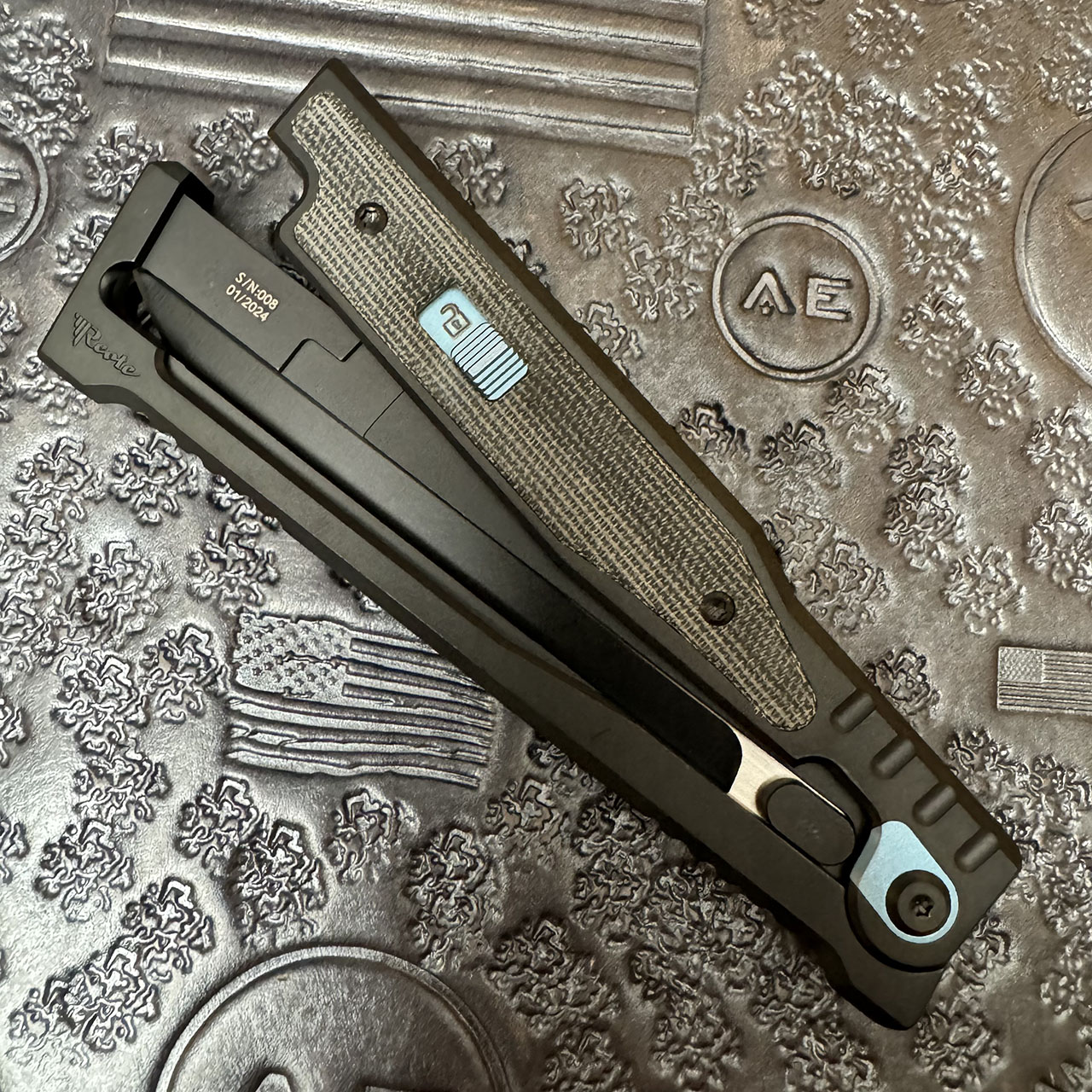 Reate EXO V2 D/E Gravity Knife Titanium PVD Handle w/ Black Micarta Inlay PVD/Satin Blade