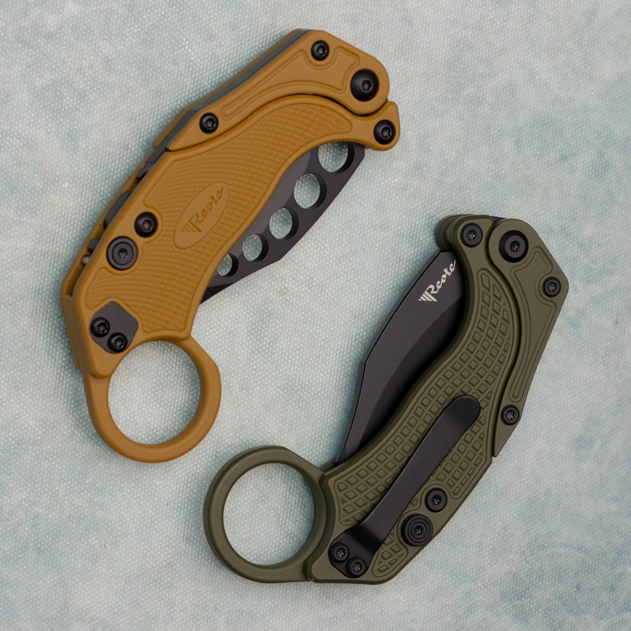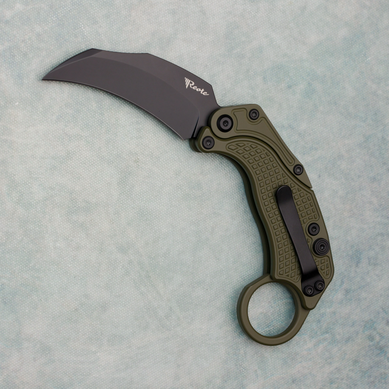 Reate Knives EXO-K Button Lock Karambit Gravity Knife Green Handle Black Blade w/ Trainer