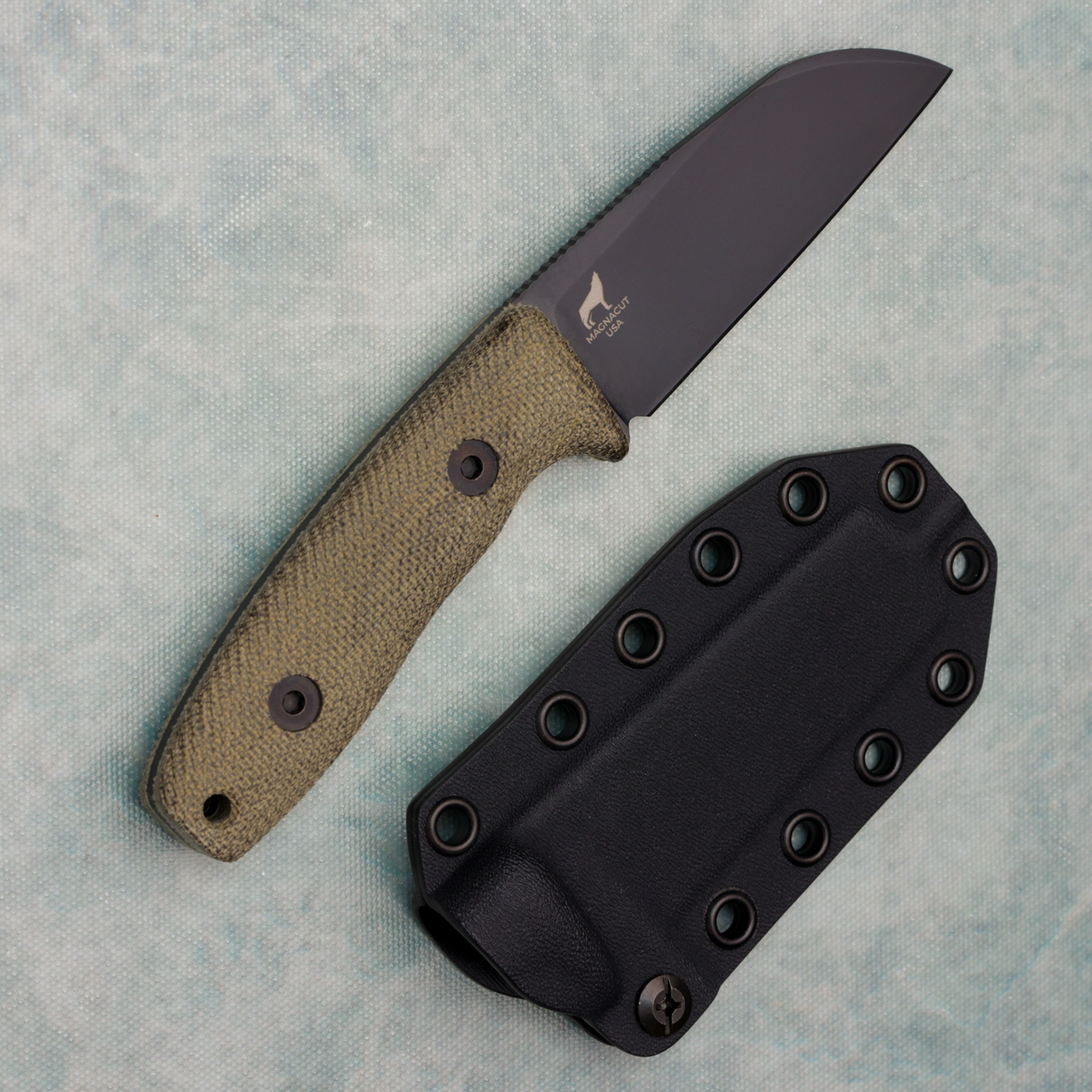 Reiff Knives Circadian Fixed Blade Green Canvas Micarta Handle DLC MagnaCut Sheepsfoot Blade